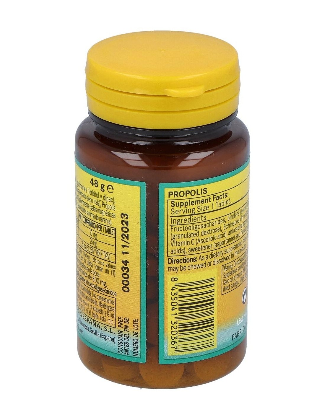 PRÓPOLIS, TOMILLO, EQUINÁCEA, VITAMINA C, EXCIPIENTES (LIMÓN EN POLVO, ISOMANITOL, AROMAS NATURALES DE NARANJA Y FRUCTOSA.