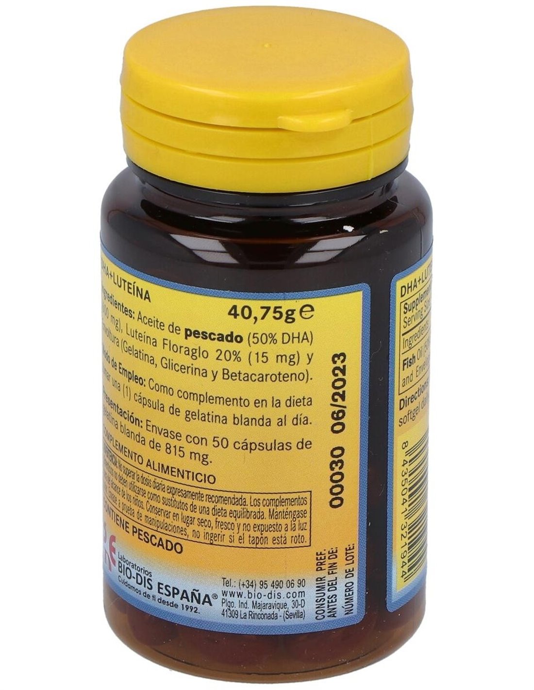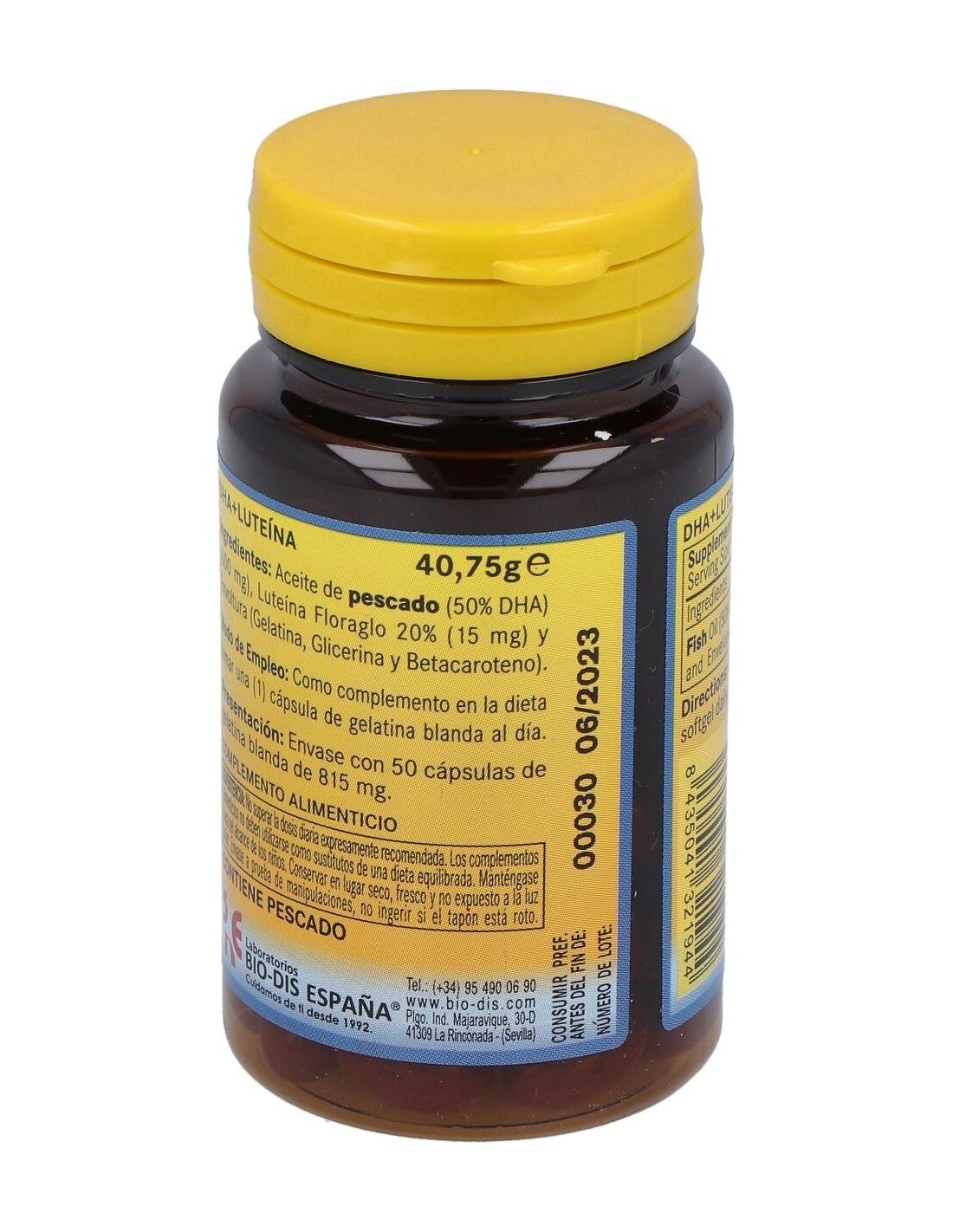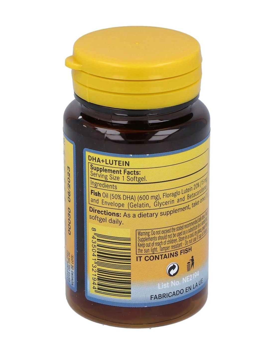ACEITE DHA 50%, FLORAGO 20%, LUTEÍNA, GELATINA, GLICERINA Y BETACAROTENO.