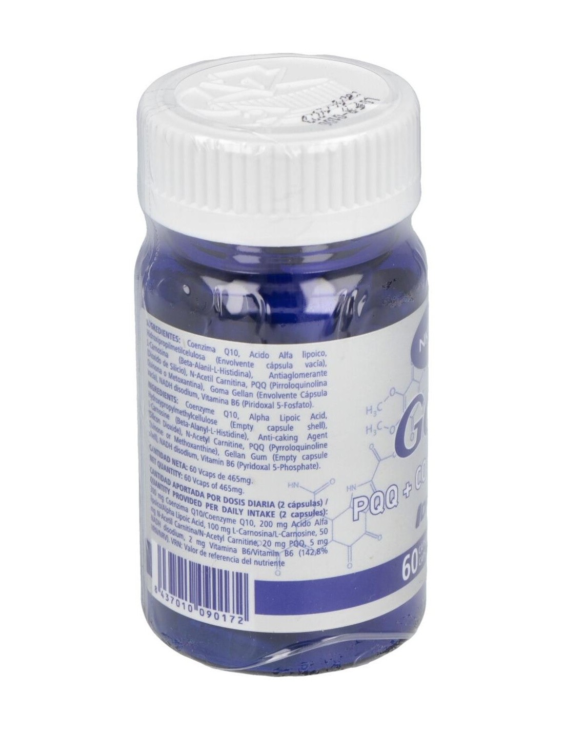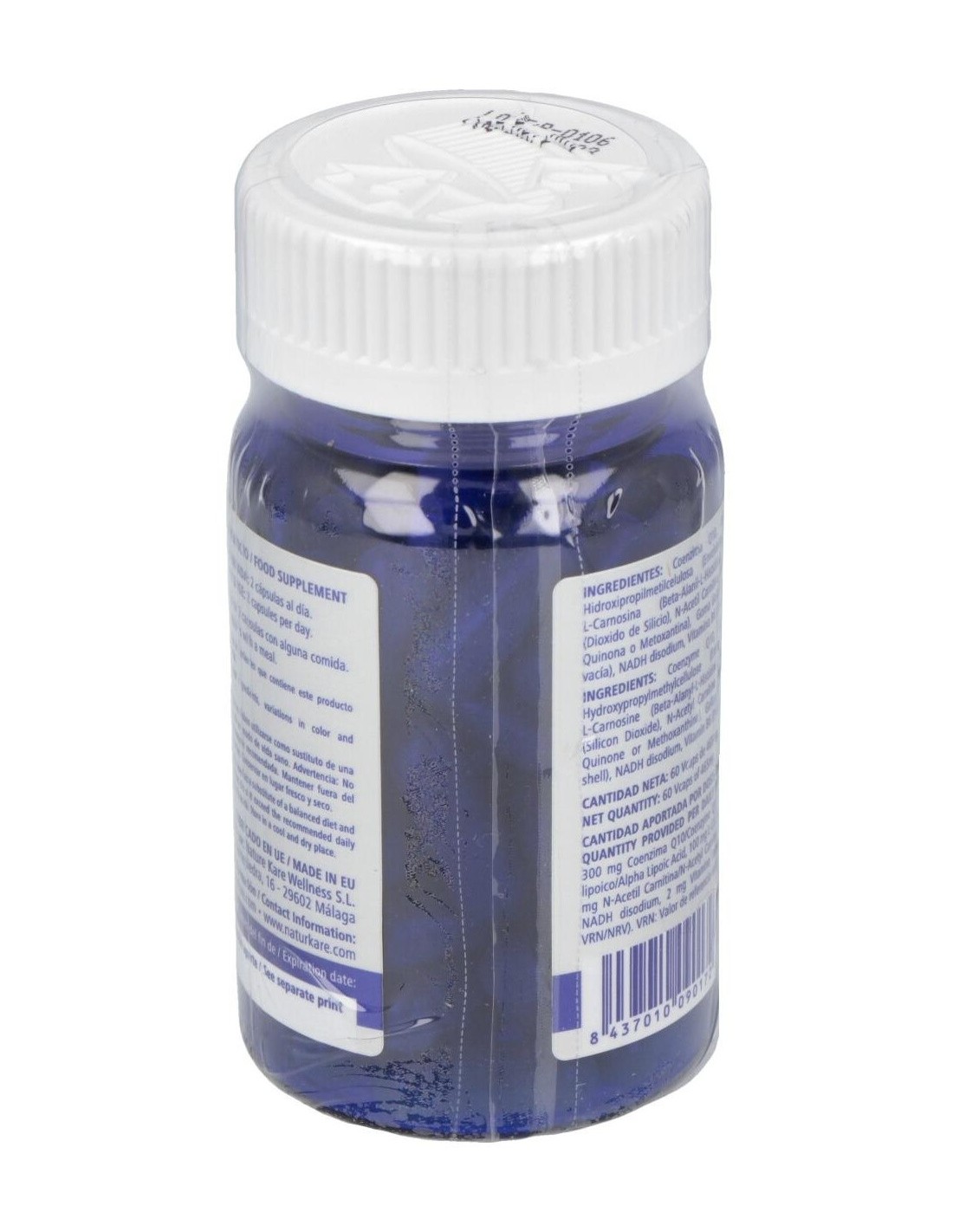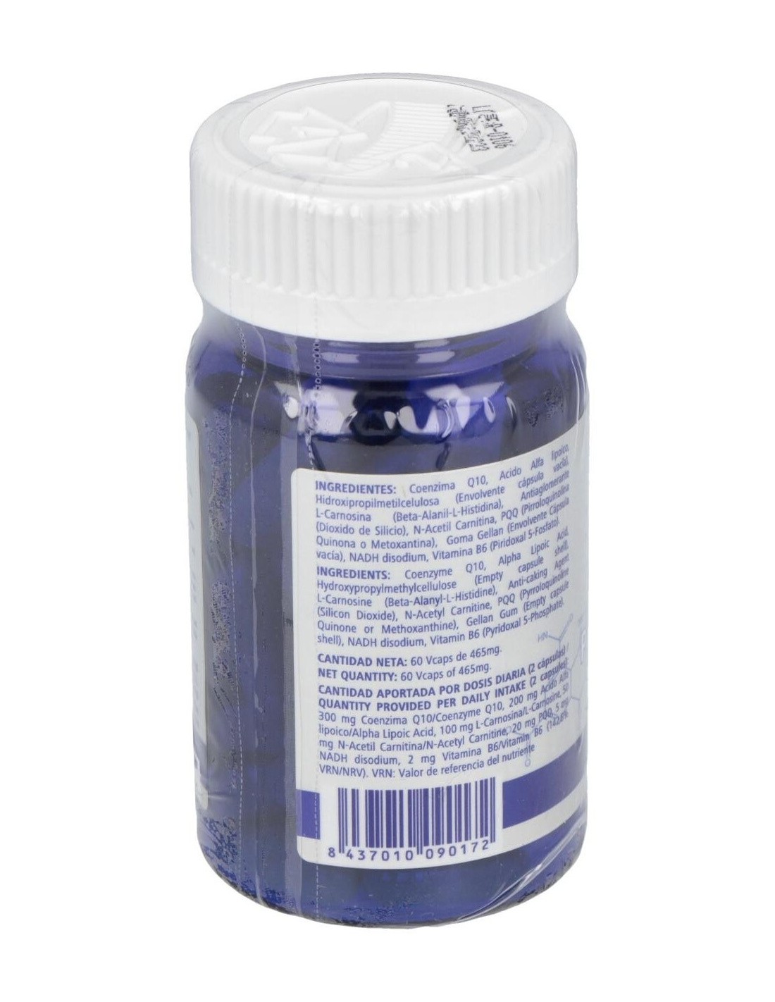 Coenzima Q10, ácido alfa lipoico, hidroxipropilmetilcelulosa (envolvente cápsula vacía), l-carnosina, antiaglometante (dióxido de silicio), N-acetil carnitina, PQQ (pirroloquinolina quinona o metoxantina) NADH disodium, vitamina B6 (piridoxal 5-fosfato).