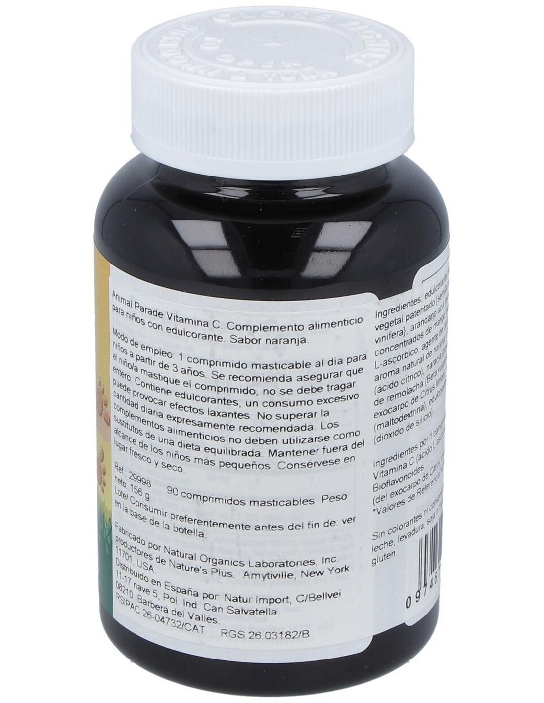 Comprimidos masticables a base de vitamina C, en forma de animales, con agradable aroma y sabor a naranja, aptos para niños a partir de 4 años. Protege de la oxidación a otras vitaminas, contribuye a la eliminación de sustancias tóxicas e interviene en la detoxificación pulmonar. Es de gran importancia para el funcionamiento y equilibrio del sistema nervioso, para la adaptación del organismo a situaciones de estrés y mejora la utilización de la glucosa.