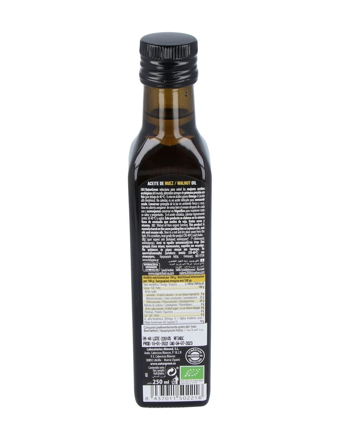 Aceite De Nuez 1ª Pression Frio 250Ml Bio de Naturgreen