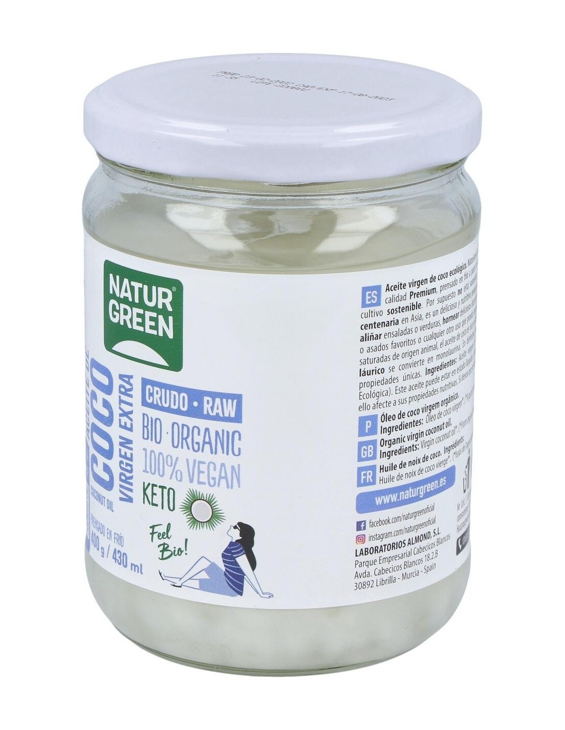 Aceite Virgen De Coco 1ª Presion Frio 400Gr. Bio de Naturgreen