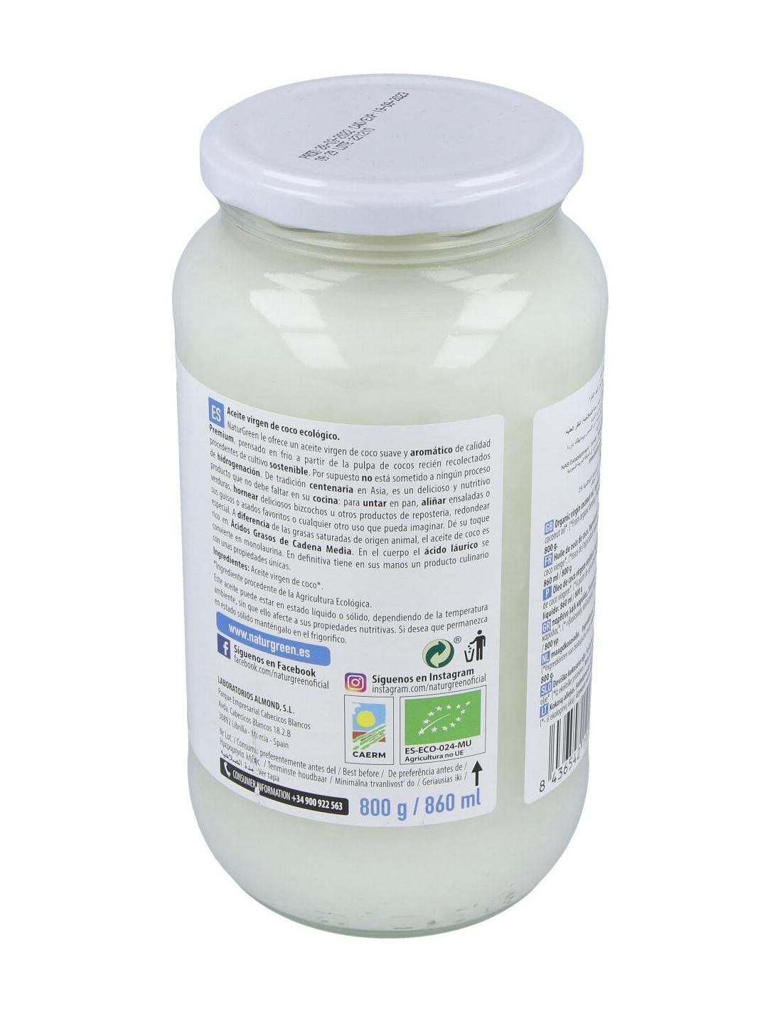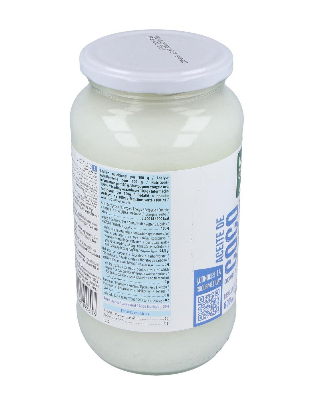 Está elaborado solamente con cocos de cultivo ecológico procedentes de Sri Lanka que se fabrica utilizando métodos de extracción y prensado en frío, sin refinar ni blanquear por lo que mantiene todas sus propiedades beneficiosas inalteradas. Además, es libre de colesterol y grasas trans.