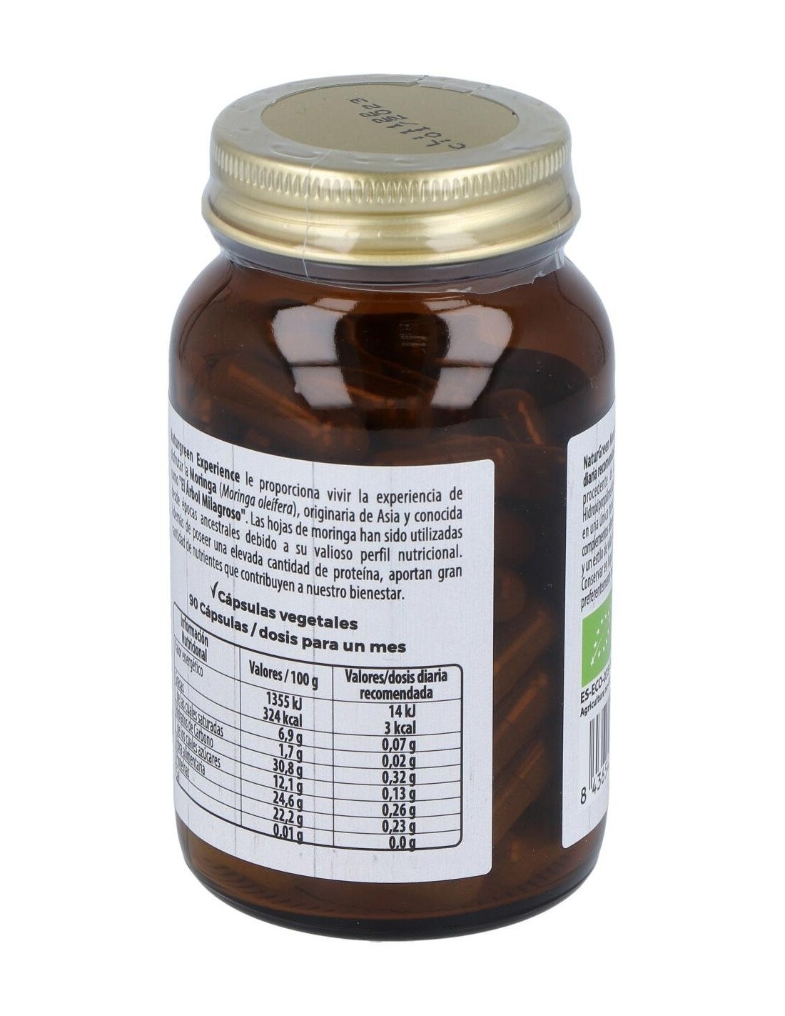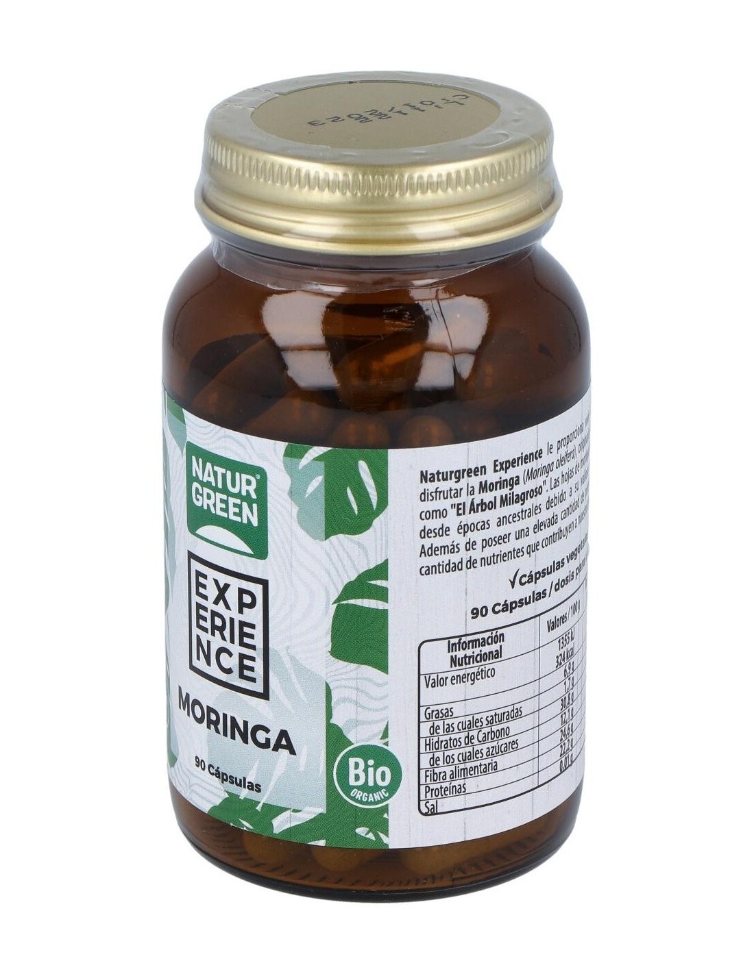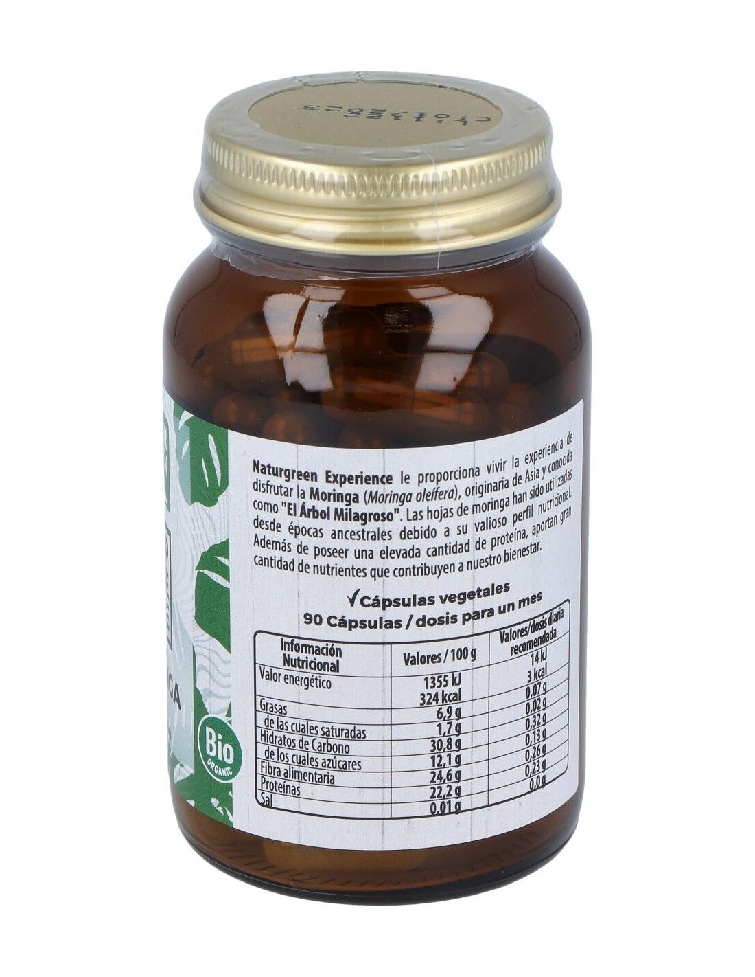NaturGreen Moringa Bio 90 Cápsulas complemento alimenticio en base de Hojas de Moringa oleífera ecológica en cápsulas. La moringa es una planta tropical llena de propiedades.