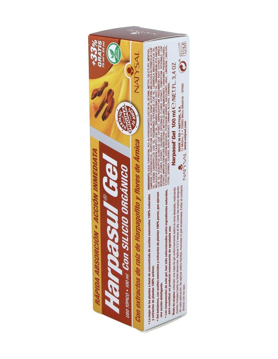 NATYSALGel de rápida absorción y acción inmediata, muy efectivo para aliviar dolores musculares. HARPASUL gel formula original 75+25ml.