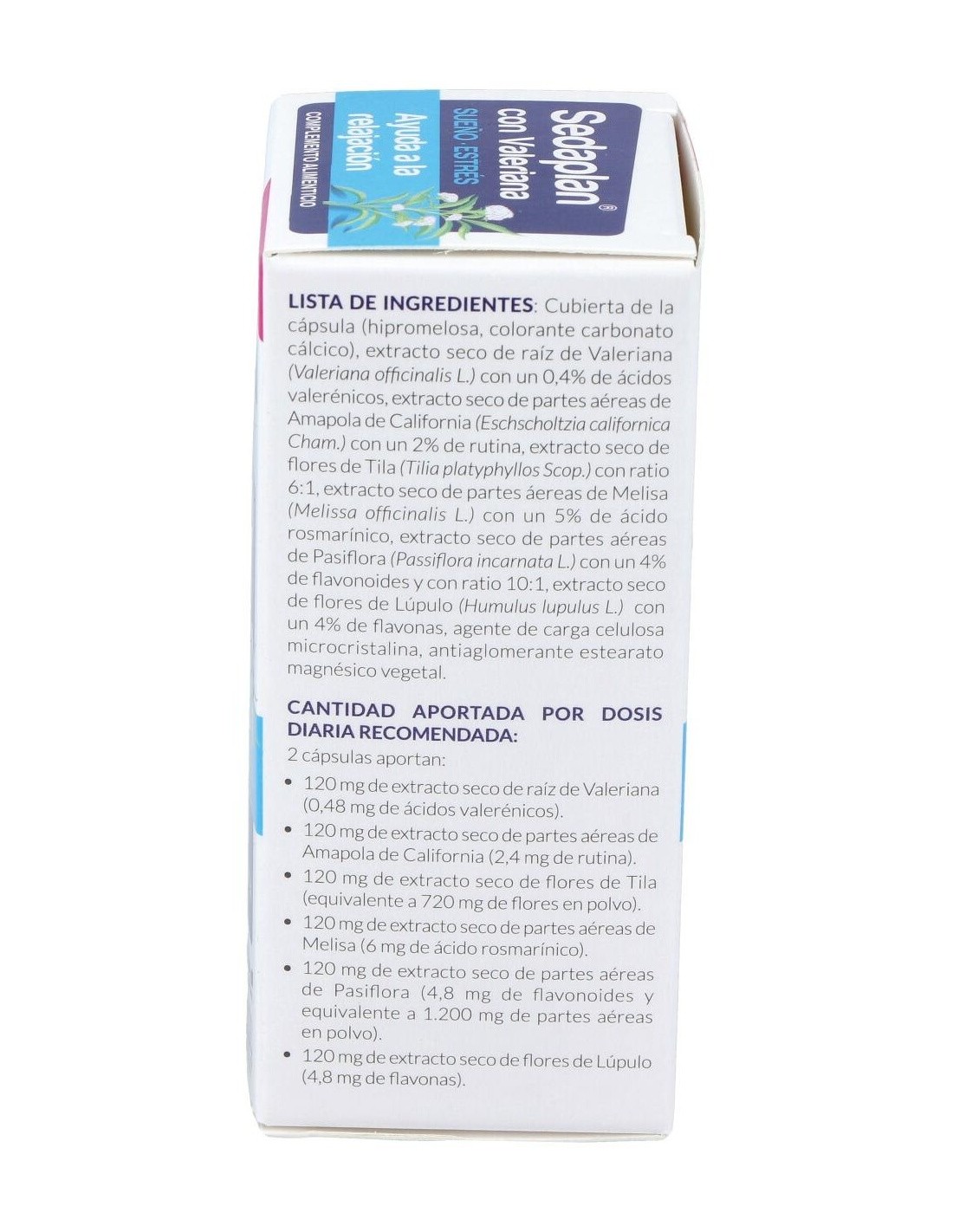Complemento alimenticio natural indicado en estados de nerviosismo que provocan irritabilidad o problemas de sueño. Reforzado con valeriana que ayuda a conciliar el sueño en momentos de nerviosismo leve. Combina diferentes plantas tradicionalmente utilizadas por sus beneficios relajantes. Contiene pulverizado de valeriana, de melisa, de tila y de naranja (azahar), estas plantas poseen un efecto sedante que genera relajación y sosiego en nuestro organismo. Además contiene melisa, manzanilla y menta. Presentación: Envase de 60 cápsulas.