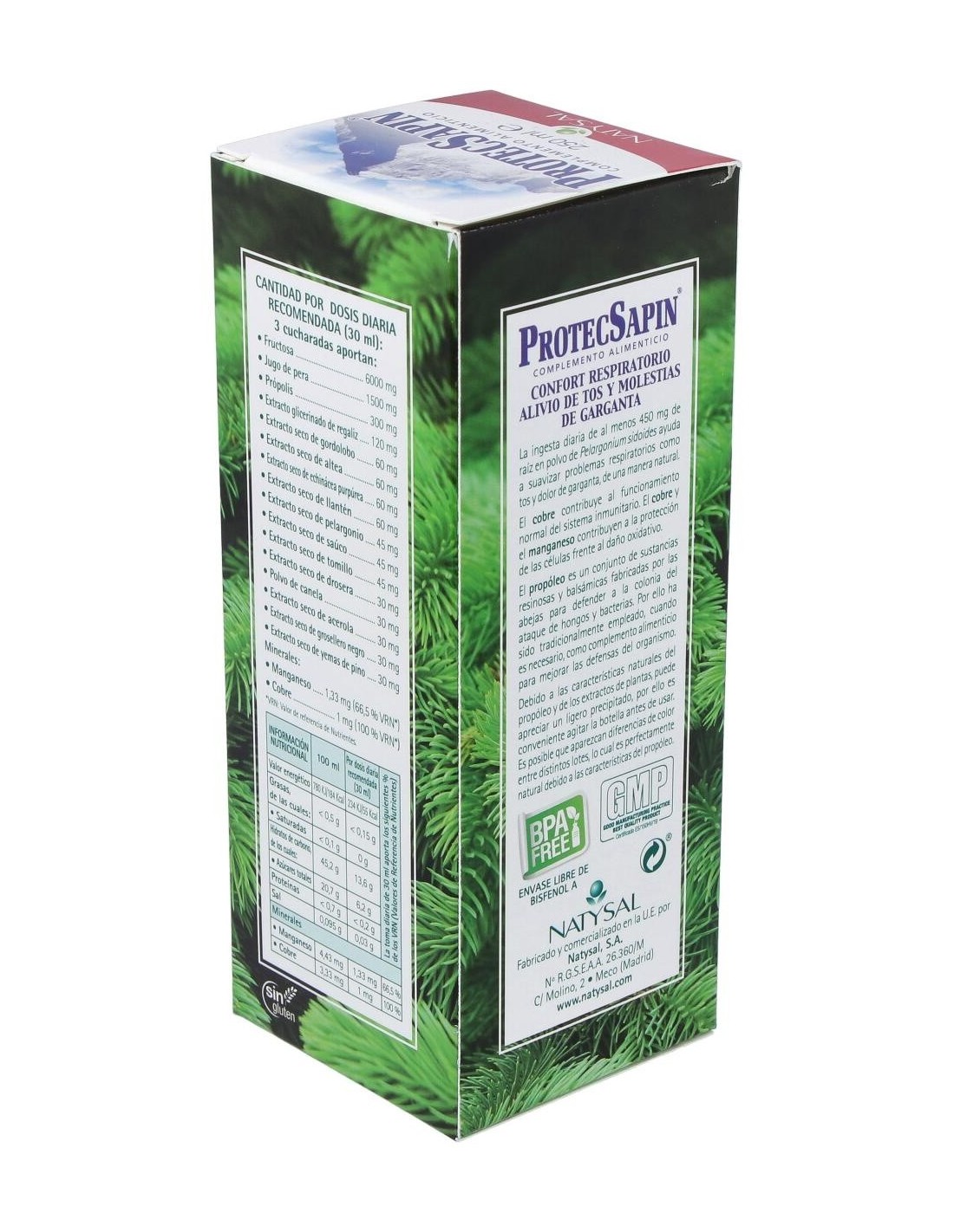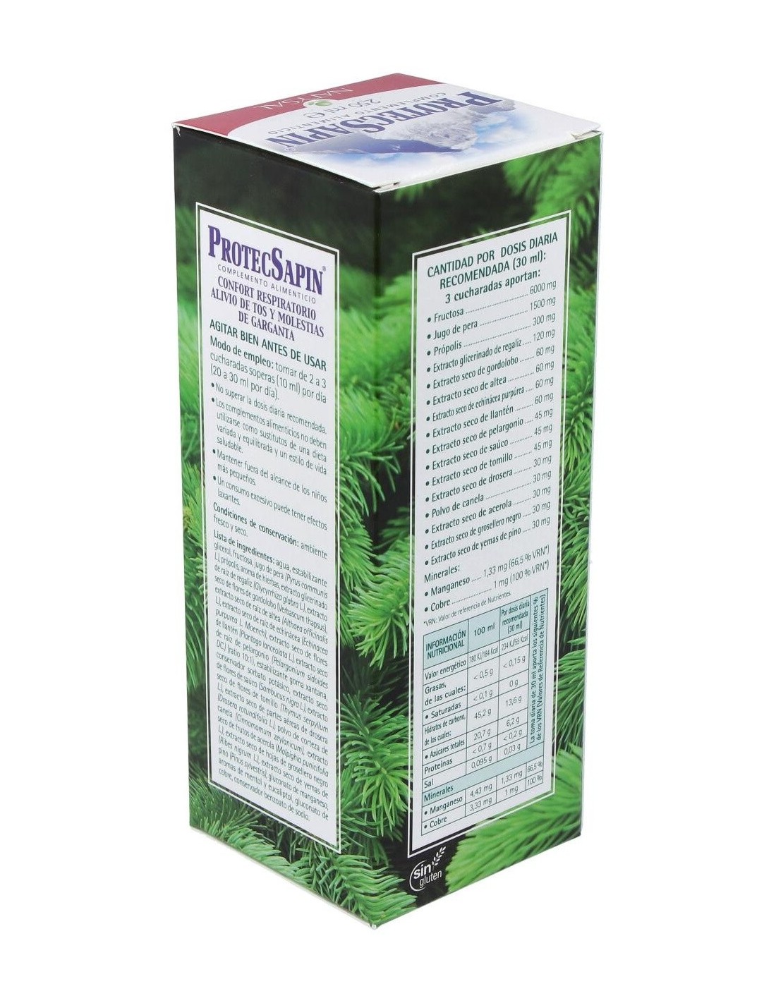 Agua, estabilizante glicerol, fructosa, jugo de pera (Pyrus communis L.), própolis, aroma de hierbas, extracto glicerinado de raíz de regaliz (Glycyrrhiza glabra L.), extracto seco de flores de gordolobo (Verbascum thapsus), extracto seco de raíz de altea (Althaea officinalis L.), extracto seco de raíz de echinácea (Echinacea purpurea L. Moench), extracto seco de flores de llantén (Plantago lanceolata L.), extracto seco de raíz de pelargonio (Pelargonium sidoides DC.) (ratio 10:1), estabilizante goma xantana, conservador sorbato potásico, extracto seco de flores de saúco (Sambucus nigra L.), extracto seco de flores de tomillo (Thymus serpyllum L.), extracto seco de partes aéreas de drosera (Drosera rotundifolia L.), polvo de corteza de canela (Cinnamomum zeylanicum), extracto seco de frutos de acerola (Malpighia punicifolia L.), extracto seco de hojas de grosellero negro (Ribes nigrum L.), extracto seco de yemas de pino (Pinus sylvestris), gluconato de manganeso, aromas de mentol y eucaliptol, gluconato de cobre, conservador benzoato de sodio.