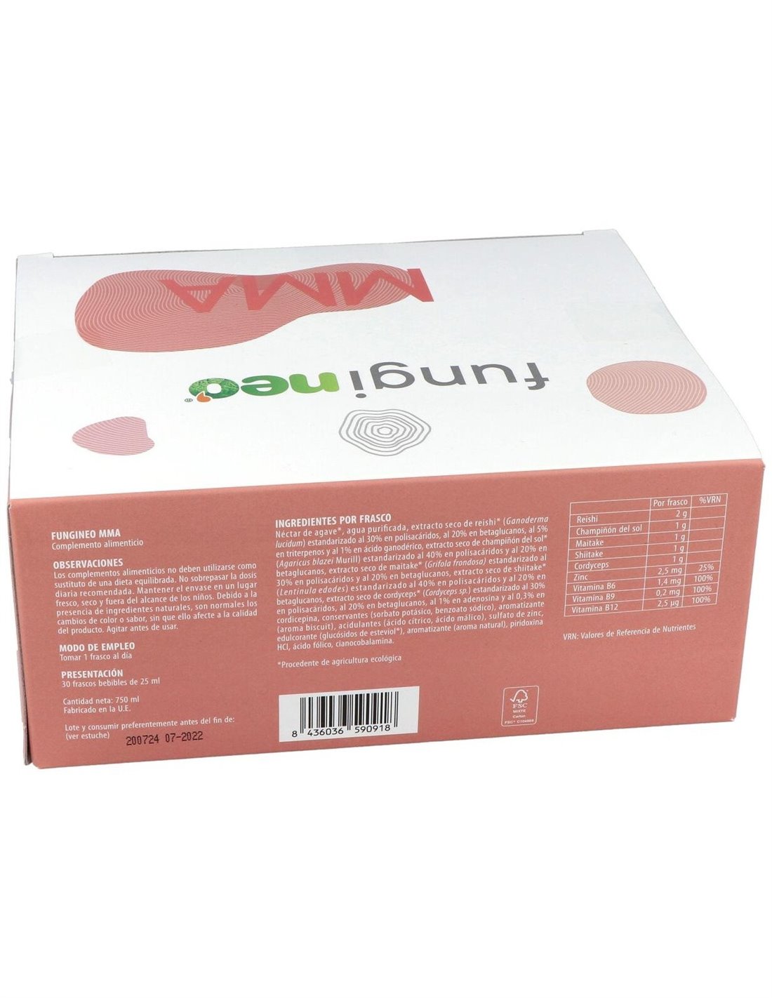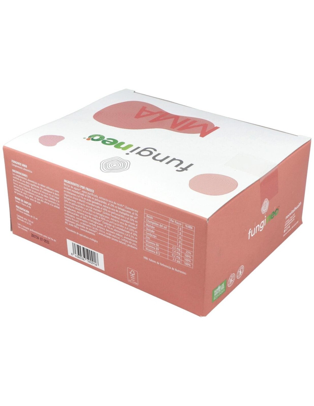 Complemento alimenticio que aporta todos los beneficios de los hongos medicinales de cultivo ecológico en alta concentración, llena de salud y vitalidad con una sola toma al día. Está elaborado a base de extractos de hongos ecológicos. Incluye reishi, champiñón del sol, maitake, shiitake y cordyceps. Asimismo, es un producto natural que contiene vitaminas del conjunto B (B6, B9, B12) y zinc. Además, ayudan a disminuir los efectos secundarios relacionados con los tratamientos.