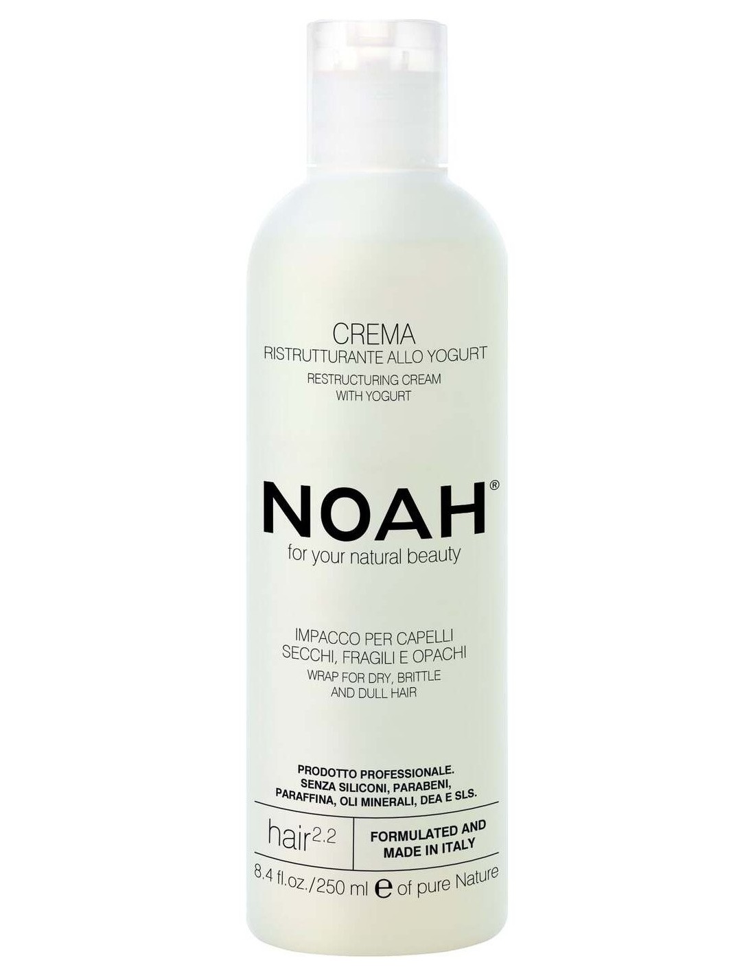 NOAHCrema reestructurante sin siliconas para cabellos secos, quebradizos y sin brillo. Enriquecida con las propiedades nutritivas y emolientes del yogur, repara y reestructura, dejando el cabello brillante, suave y con cuerpo. El producto NO contiene Siliconas, Parabenos, Parafina, Aceites Minerales, DEA y SLS.