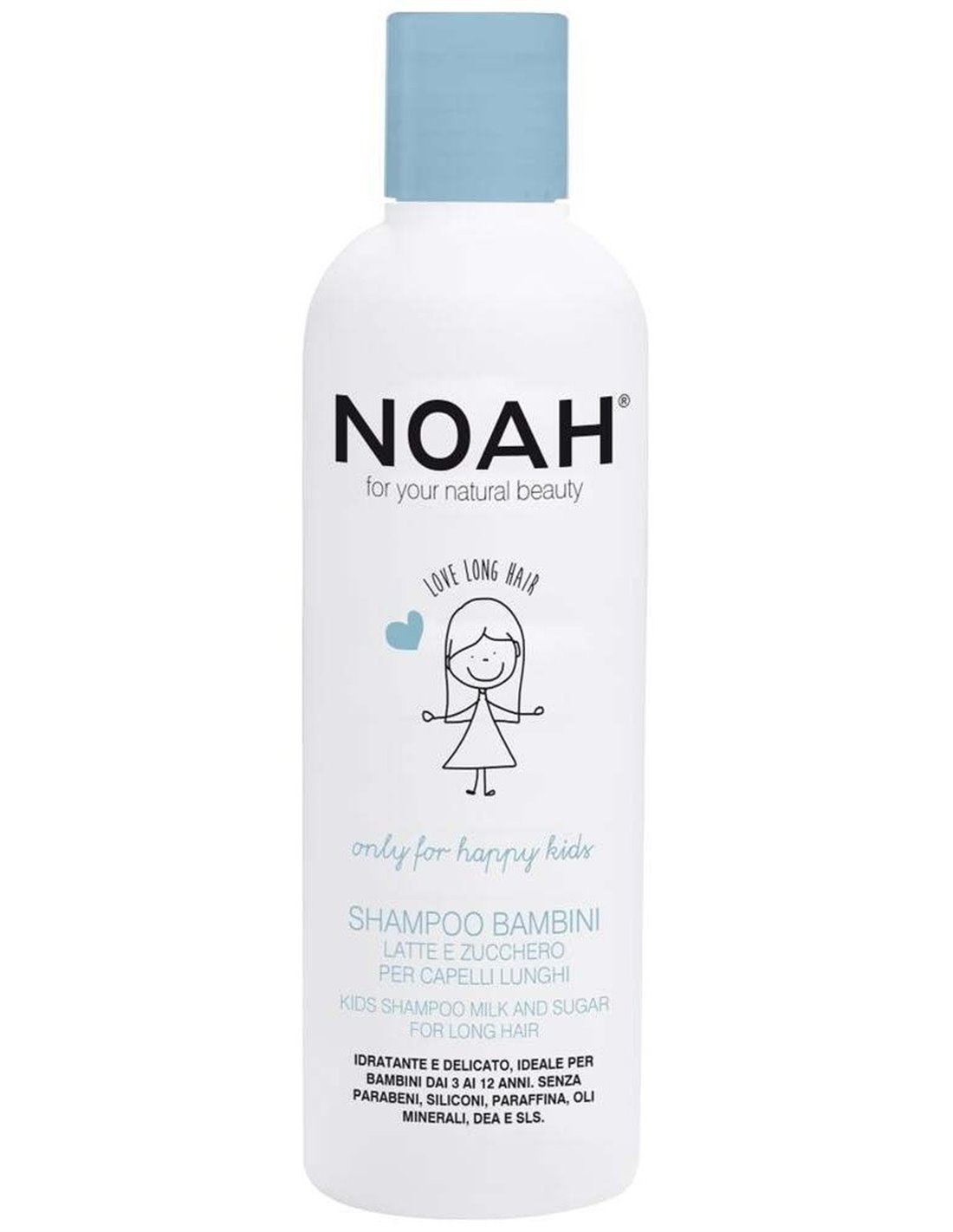 NOAHChampú apto para lavados frecuentes que respeta la fisiología del cuero cabelludo infantil. Su base limpiadora está compuesta por detergentes de origen vegetal, delicados con el cabello y el cuero cabelludo y enriquecidos por la presencia de ingredientes hidratantes como el azúcar y las proteínas de la leche. Su formulación es ideal para cabellos largos, finos y con tendencia a enredarse. Fácil de enjuagar. El producto NO contiene Siliconas, Parabenos, Parafina, Aceites Minerales, DEA y SLS.