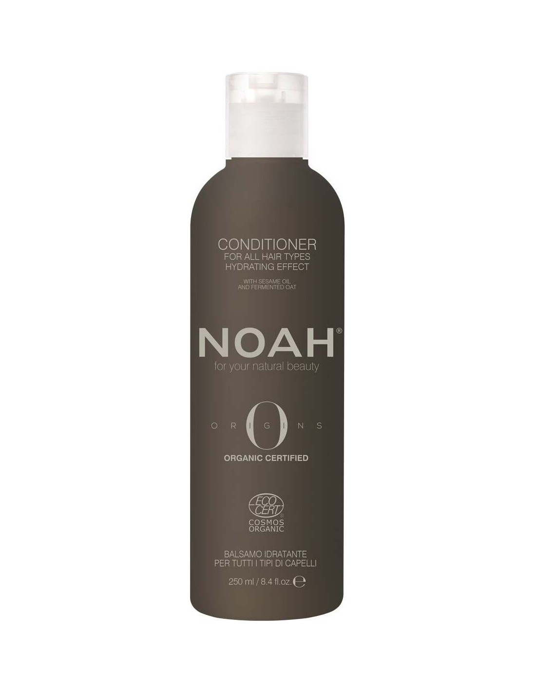 NOAHAcondicionador hidratante de Noah adecuado para todo tipo de cabellos, con aceite de sésamo y avena fermentada. Ayuda a nutrir, hidratar y desenredar el cabello. El producto también da brillo al cabello sin apelmazarlo. EcoCert Cosmos Organic.