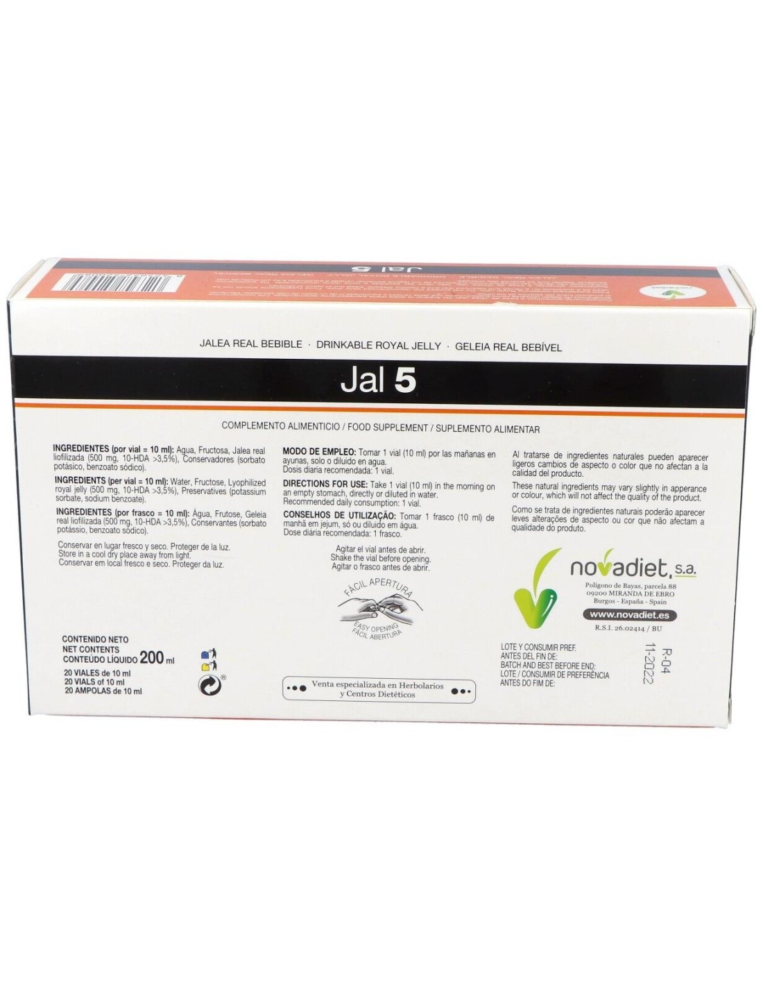 Los Novadiet Jal-5 Viales ayudarán a que tu cuerpo y tu mente se mantengan activos y funcionando correctamente en esas épocas en las que necesitamos un aporte extra para lograrlo. También son ideales para deportistas, para ayudarte en época de exámenes y para convalecencias.