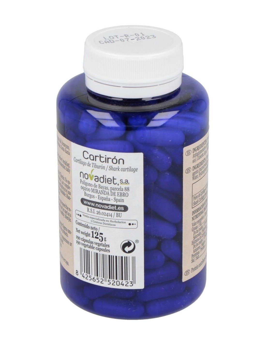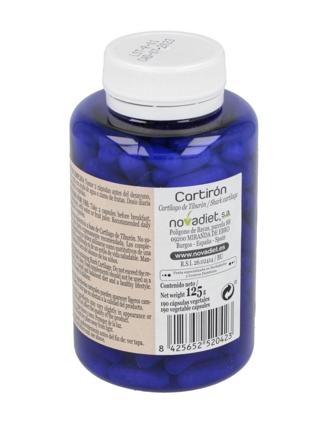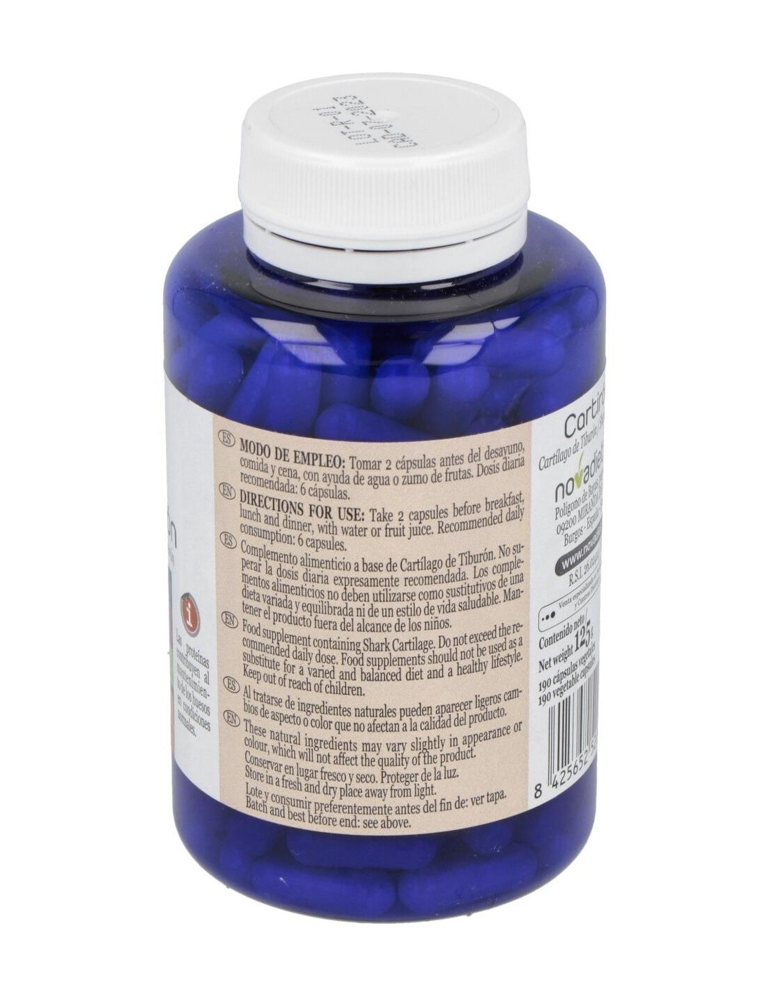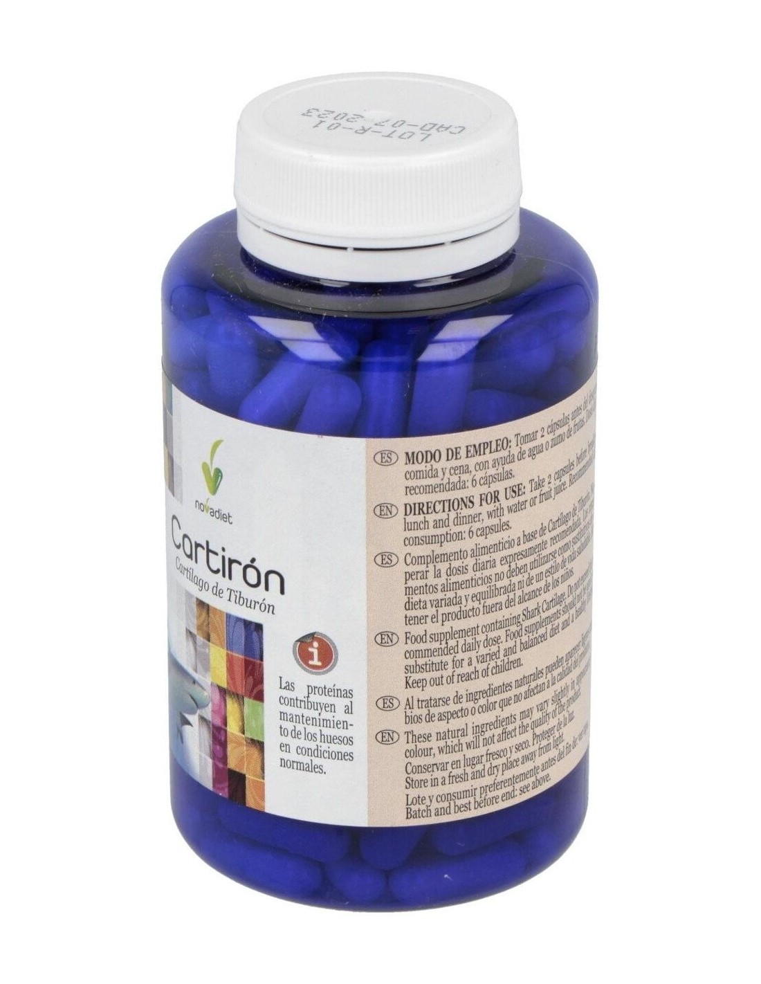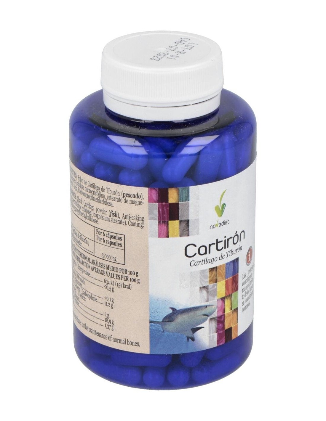 Suplemento a base de cartílago de tiburón que alivia el dolor de las articulaciones y además, fortalece los huesos. Sirve para deportistas ya que previene las lesiones y acorta su duración.