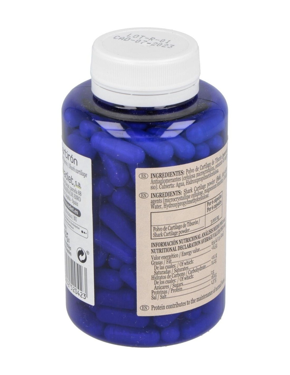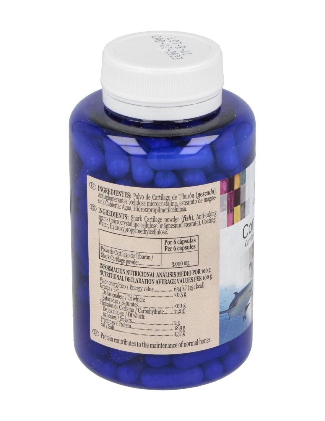 Polvo de Cartílago de Tiburón: 3.000 mg