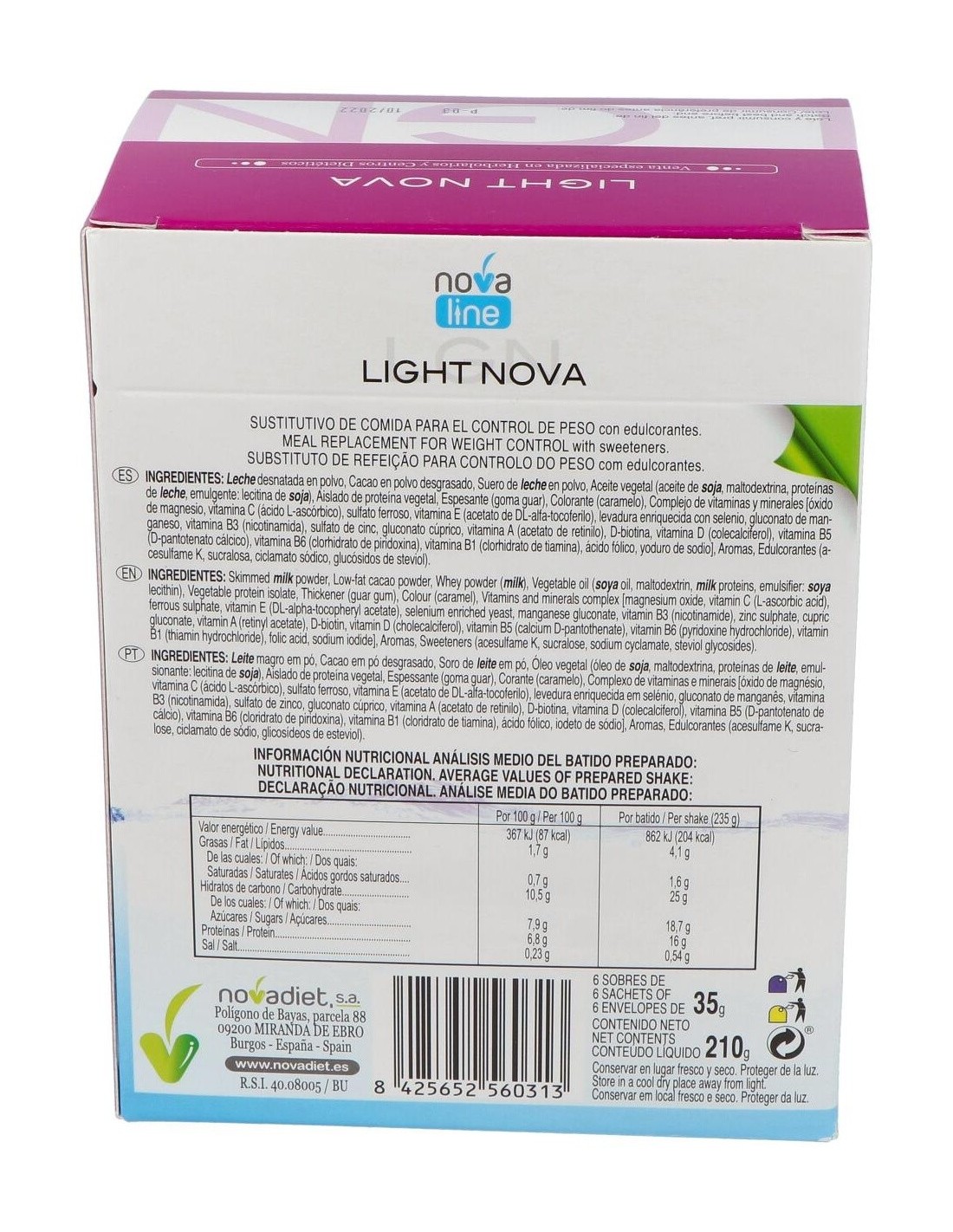 Light Nova Batido Chocolate 6Sbrs. de Novadiet