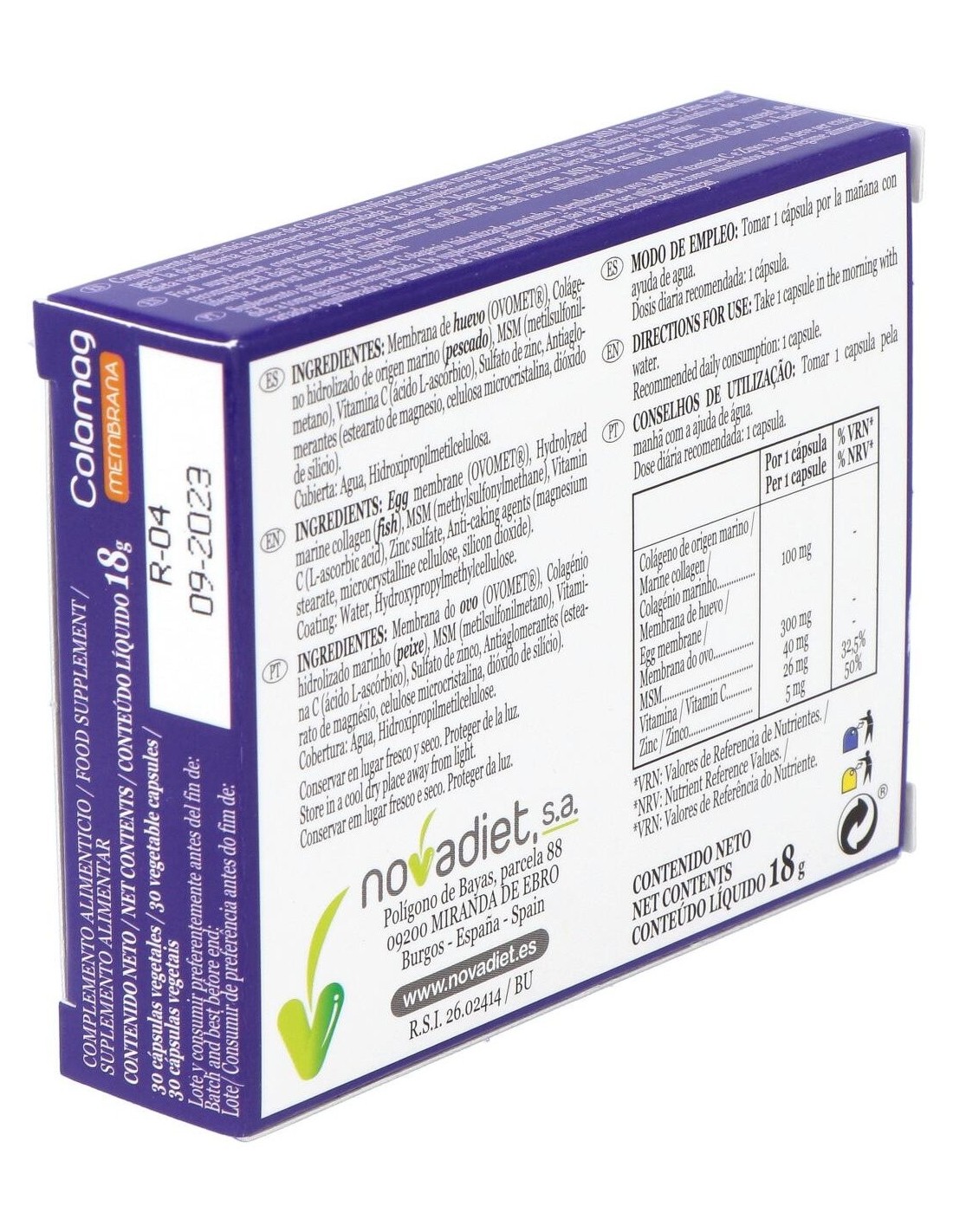 Las cápsulas Novadiet Colamag Membrana son el aliado indicado para ayudarnos a mantener huesos, articulaciones, ligamentos y músculos en perfecto estado, evitando el desgaste y los dolores que causa el paso del tiempo. Su fórmula también ayudará a mantener una piel de aspecto más joven.