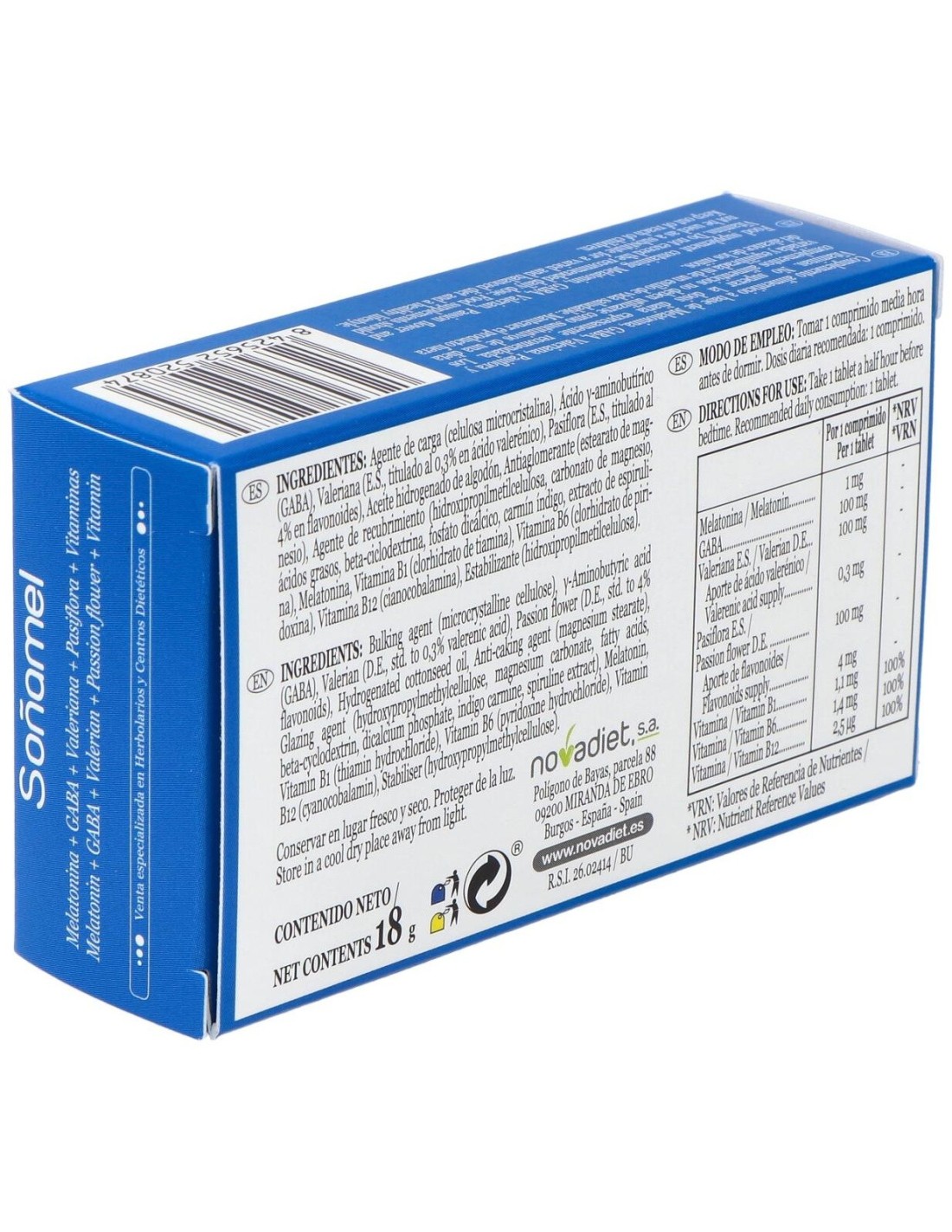 Complemento alimenticio en cápsulas a base de Melatonina, GABA, Valeriana, Pasiflora y Vitaminas que es eficaz para el insomnio inicial y en el de mantenimiento. No está recomendado para personas menores de 18 años ni durante el embarazo o la lactancia. Consultar con un especialista en caso de tener enfermedades autoinmunes, si se toma hipnóticos, sedantes o antidepresivos.