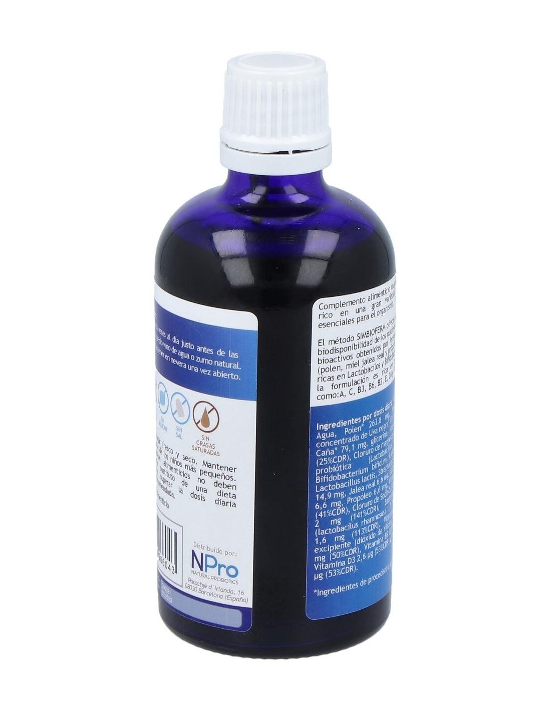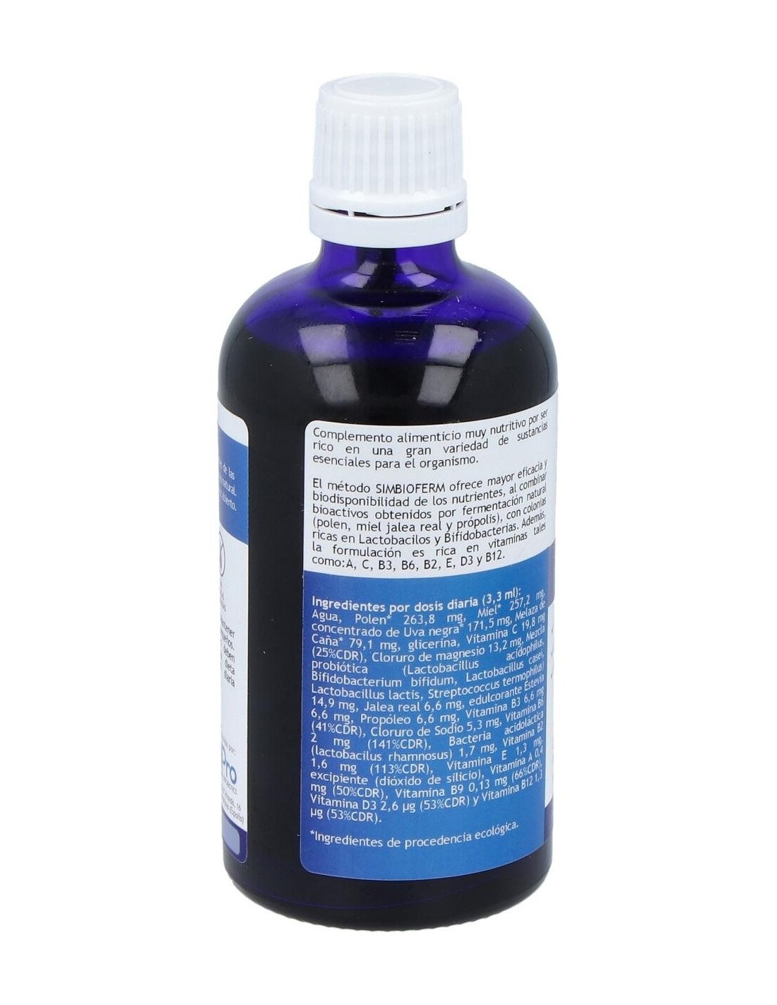 Polen,* Miel,* Mosto concentrado de Uva negra* (Vitis vinífera), Melaza de caña* (Saccharum officinarum), Humectante (Glicerina vegetal), Vitamina B3-Niacina, Bacterias acidolácticas (Lactobacillus acidophilus, Bifidobacterium bifidum, Lactobacillus casei, Lactobacillus lactis, Streptococcus thermophilus, Lactobacillus rhamnosus), Vitamina E-Acetato d-alfa-tocoferol, Vitamina C-Ácido ascórbico, Magnesio (Cloruro de magnesio), Jalea real*, Estevia* (Stevia rebaudiana: Edulcorante: glucósidos de esteviol), Propóleo*, Sal marina* (Cloruro de sodio), Vitamina B6-Piridoxina clorhidrato, Vitamina B2-Riboflavina:Dióxido de silicio, Vitamina A-Retinol, Vitamina B9-Ácido fólico, Vitamina D3-Colecalciferol y Vitamina B12-Cianocobalamina.