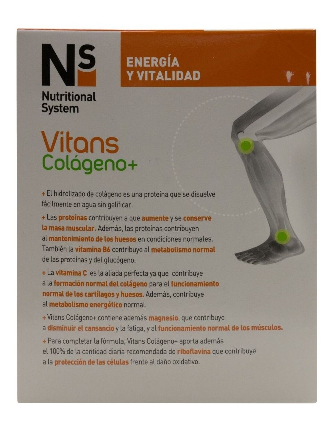 NSSuplemento nutricional que puede ser de ayuda a personas que practican deporte y personas a partir de 40 años, ya que aporta nutrientes de apoyo articular como vitamina C, que contribuye a la formación normal de colágeno para el funcionamiento normal de los cartílagos y huesos. Apto para diabéticos.