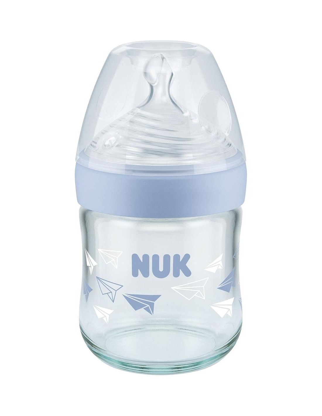 NUKTetina de silicona con múltiples orificios, simula el pecho materno y proporciona un flujo natural y continuo como en la lactancia materna.\ Especialmente ancha y flexible facilita la succión.\ Con una zona extra-suave que se adapta al paladar del bebé.\ Válvula anti-cólico Nuk que permite una toma sin pausas, evita la ingesta de aire y previene los cólicos.\ Biberón de vidrio de alta calidad, higiénico, sin olores y sin BPA.\ Seguro y fácil de utilizar. Su cuello extra ancho facilita su uso y limpieza. \ Tapa protectora que evita el derrame del líquido.\ Los modelos y colores pueden variar con respecto a la imagen.