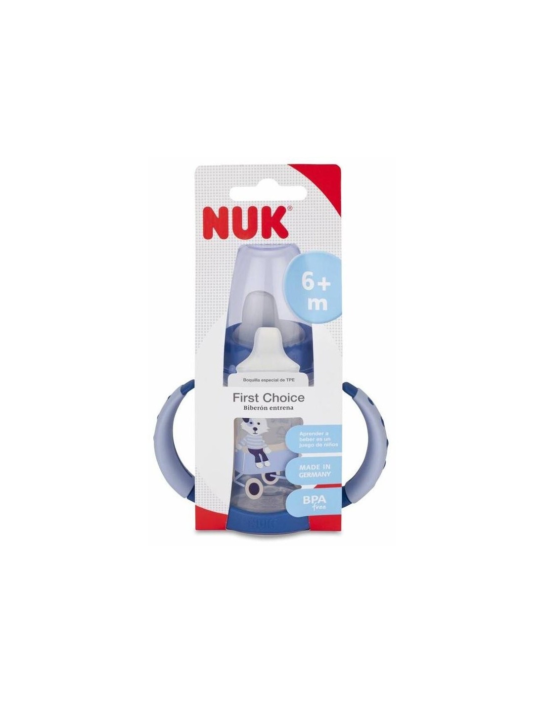 Con indicador de Control de Temperatura en la escala de medición. El color cambia con la temperatura del contenido del biberón. Si el alimento está demasiado caliente, el indicador pasa de azul a blanco.\ No contiene sustancias nocivas; sin olor y sin BPA.\ Cuello ancho para facilitar el llenado y la limpieza.\ Con sistema de ventilación NUK ANTI-COLIC AIR SYSTEM mejorado que ayuda a prevenir los cólicos.\ Al ser antigoteo evita el derrame de agua si se cae al suelo o el bebé juega con el biberón.\ Incluye anillo de rosca, disco de cierre y tapa protectora.\ Con asas de diseño ergonómico para una sujeción segura.\ Los modelos y colores pueden variar con respecto a la imagen.