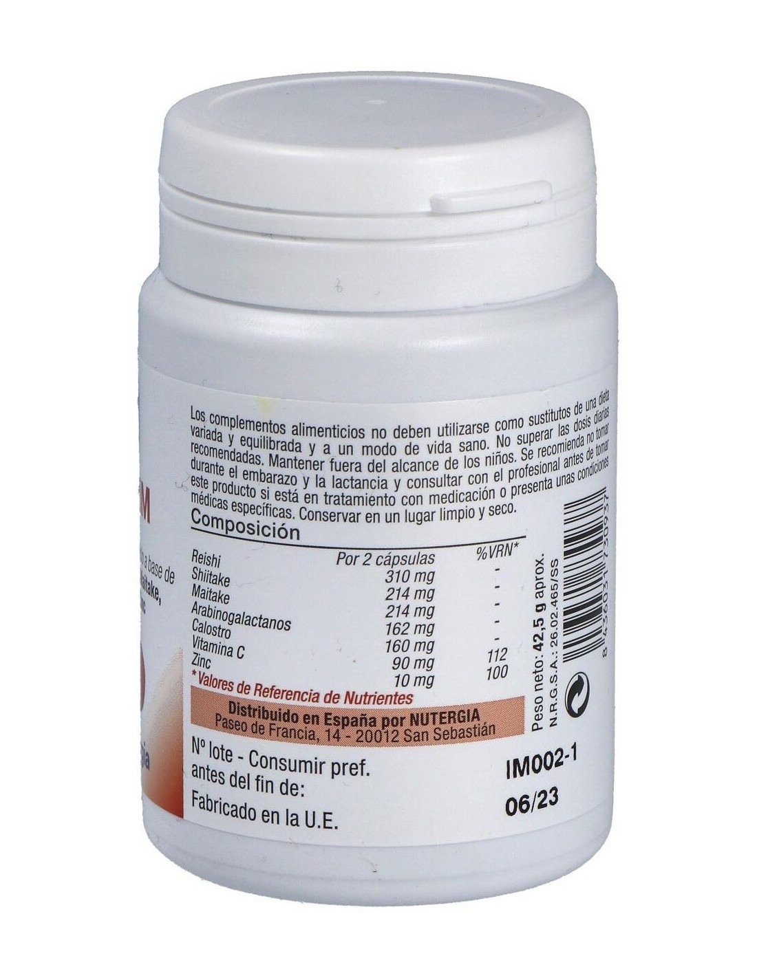 Extracto bio de reishi (Ganoderma lucidum), cápsula vegetal (HPMC), extracto bio de shiitake (Lentinula edodes), arabinolagactanos, extracto bio de maitake (Grifola frondosa), calostro bovino purificado, zinc, vitamina C.