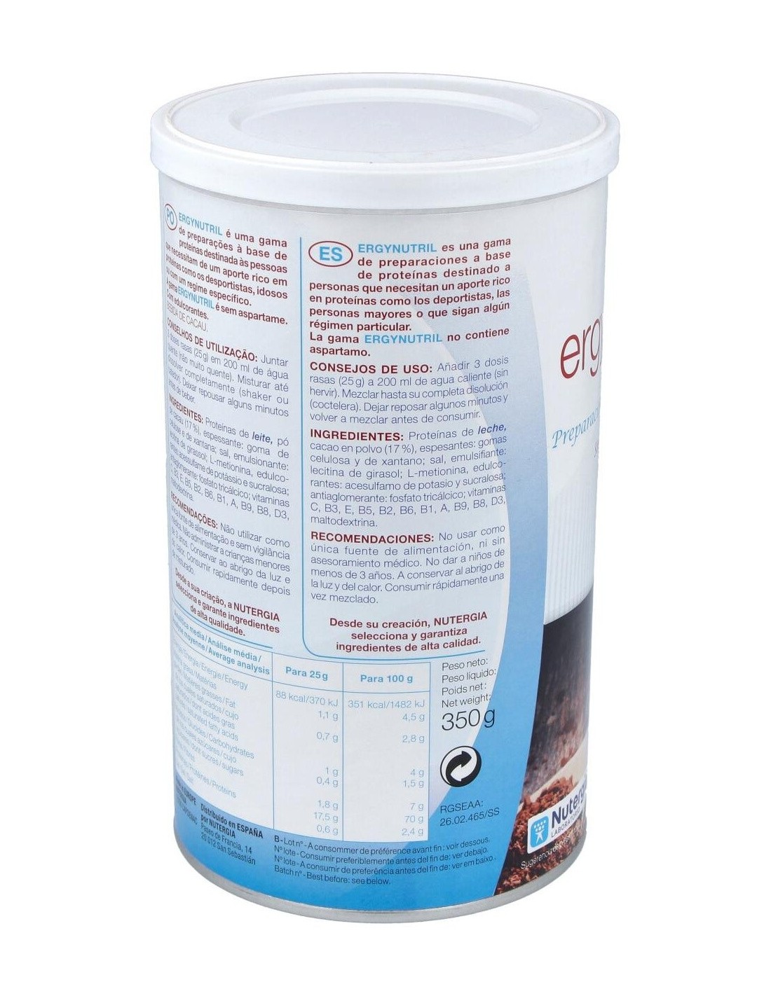 Ergynutril (Proteinas) Cacao Polvo 350Gr. de Nutergia