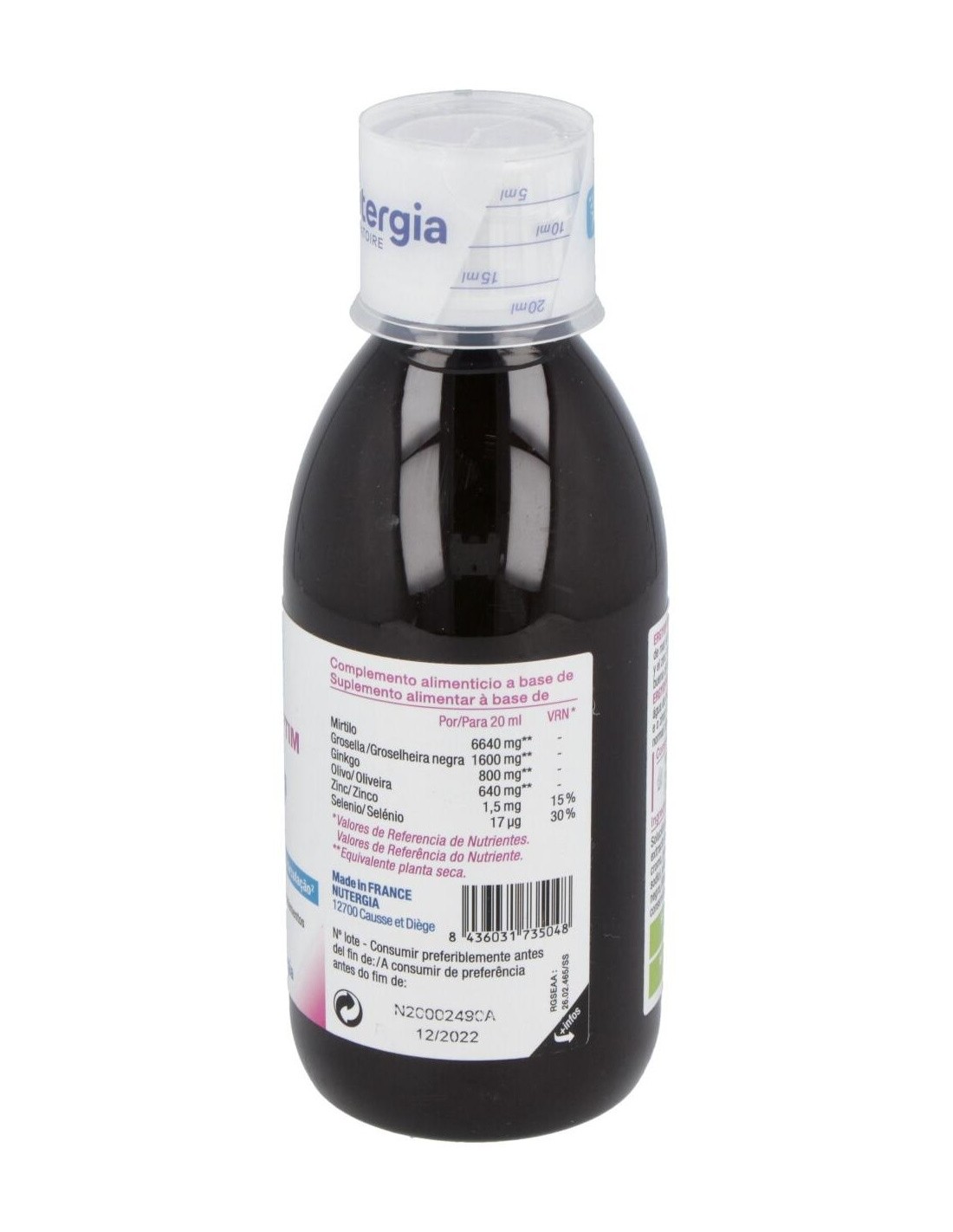 Es un complemento alimentario que ayuda al mantenimiento de la integridad de los vasos y capilares. Favorece también la circulación, tanto a nivel cerebral como ocular. Este complemento contiene mirtilo, grosellero negro, olivo, ginkgo y oligoelementos, compuesto de plantas y frutos, y ayuda al mantenimiento de la integridad de los vasos y capilares. Favorece también la circulación, tanto a nivel cerebral como ocular. Oligoelementos, como el zinc y el selenio completan la fórmula. Es una solución líquida formulada para casos como la fatiga ocular, degeneración macular, como complemento de tratamientos habituales, debilidad capilar, problemas microcirculatorios. Los ingredientes ayudan a mantener el cerebro activo y reforzar nuestra memoria, suponen una contribución para el correcto equilibrio neuronal, lo cual se traduce en un funcionamiento mayor de la memoria y de la concentración.