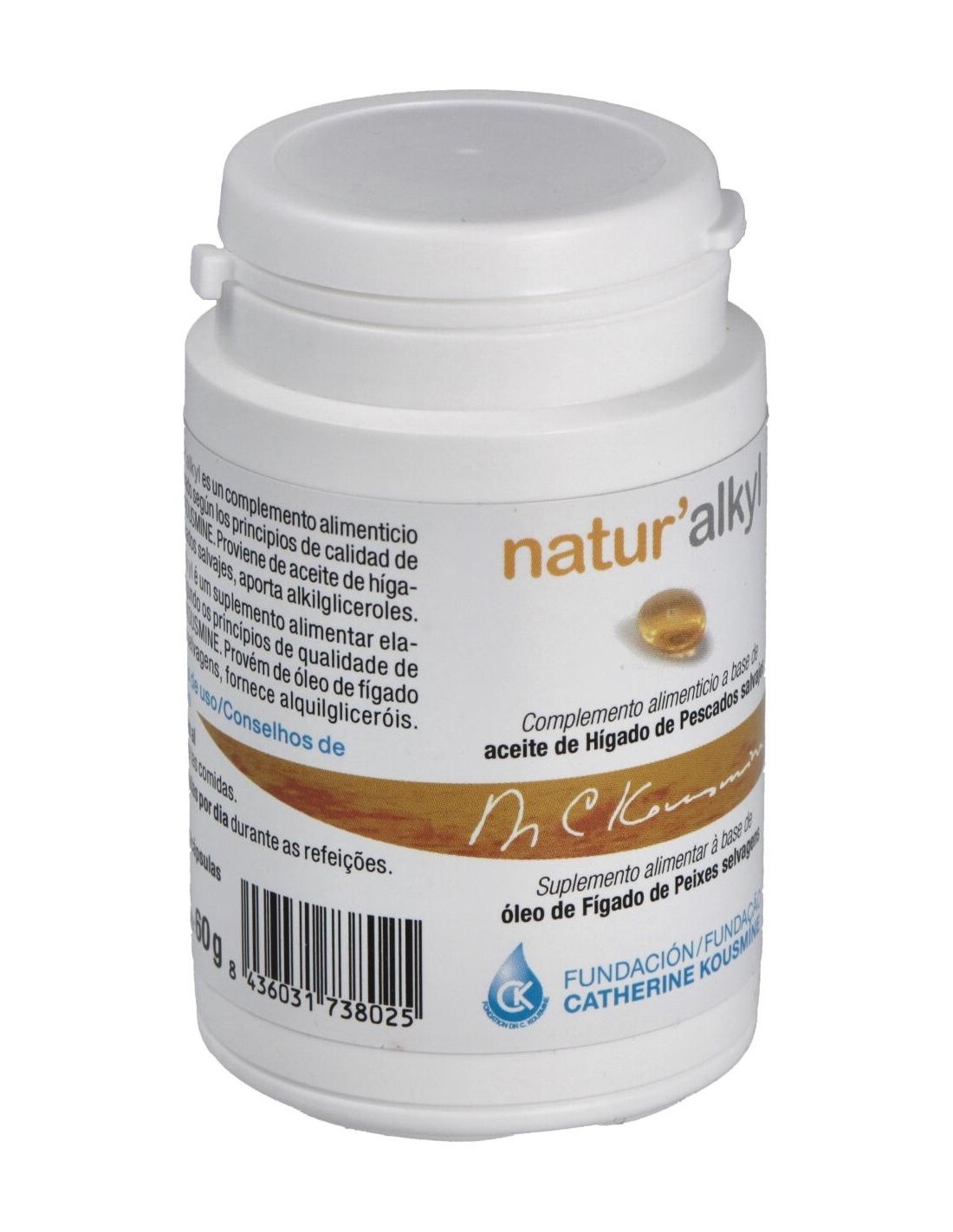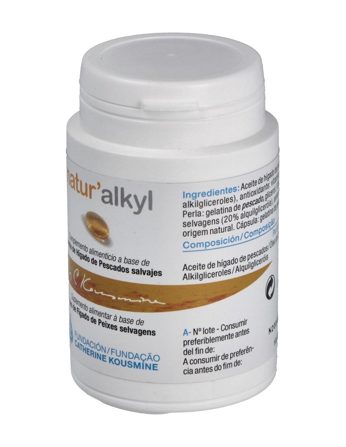 Aceite de hígados de pescados de alta concentración en alkilgliceroles (500 mg), Alkilgliceroles (50 %), Ácido oleico (35 %), Ácidos grasos (11 %).