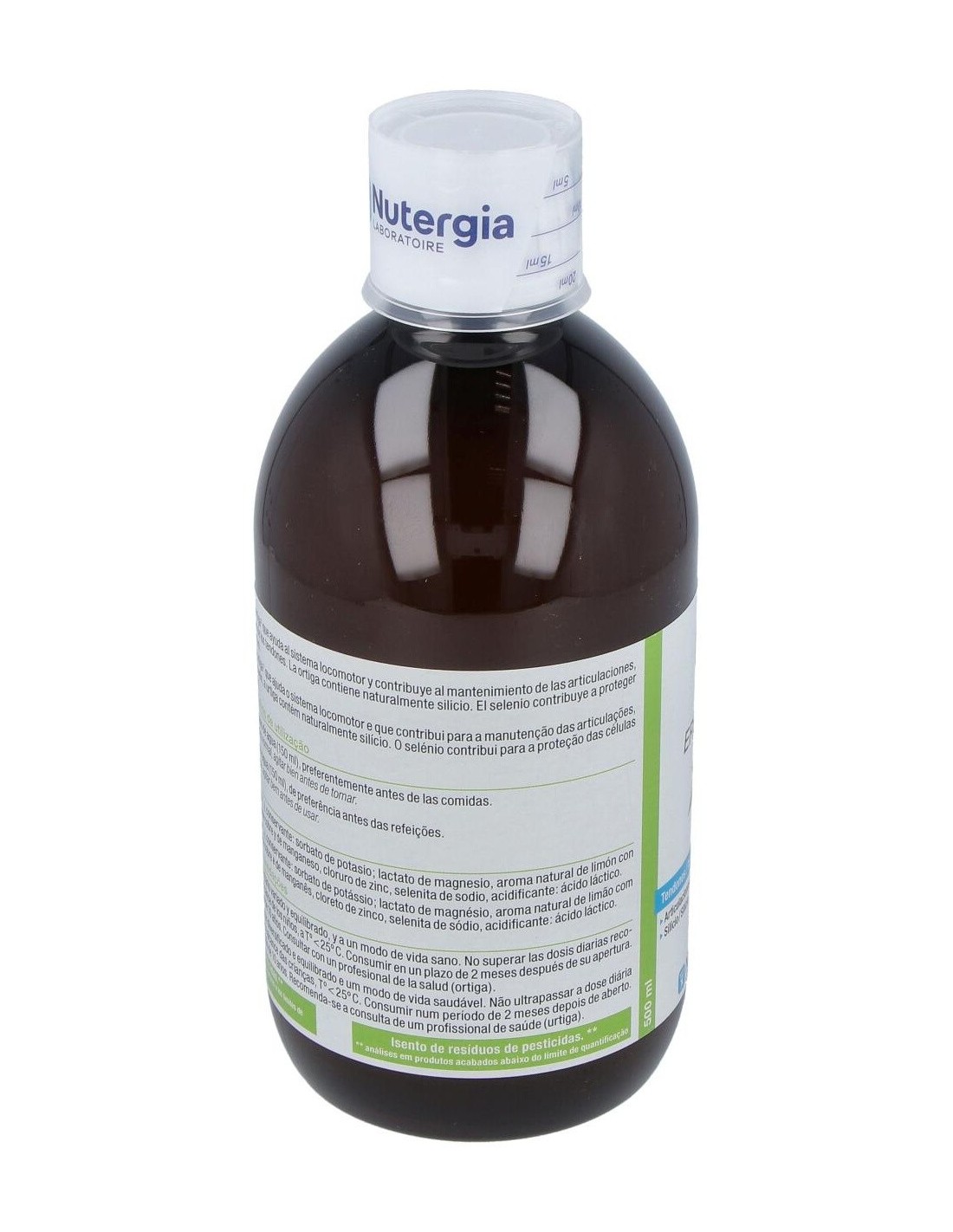 Extracto concentrado de ortiga fuente de silicio, lactato de magnesio, sulfatos de manganeso y de cobre, cloruro de zinc, selenita de sodio, ácido láctico, sorbato de potasio.