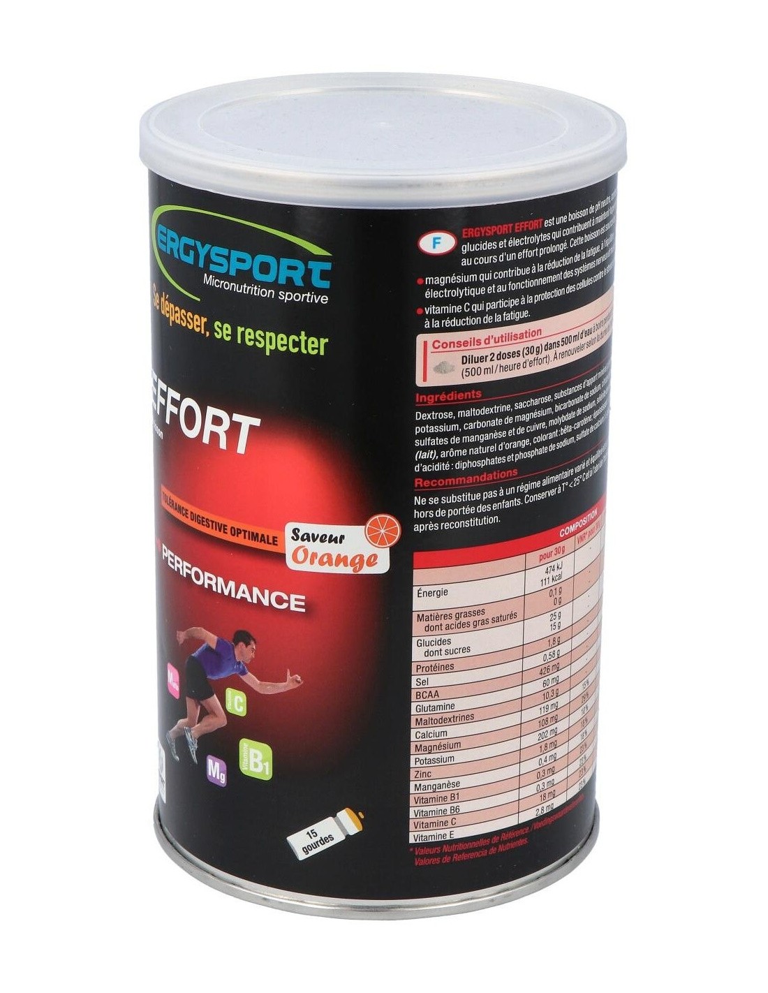 Bebida dietética particularmente rica en Magnesio que contribuye al equilibrio electrolítico, al funcionamiento del sistema nervioso y muscular, a la reducción de la fatiga, zinc que participa en el metabolismo energético y en el equilibrio ácido-basico, manganeso, vitaminas C, B1 y B6 que intervienen en el metabolismo energético y vitamina C que participa en el funcionamiento del sistema inmunitario durante el esfuerzo físico intenso.
