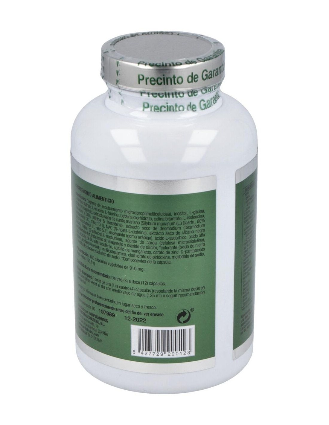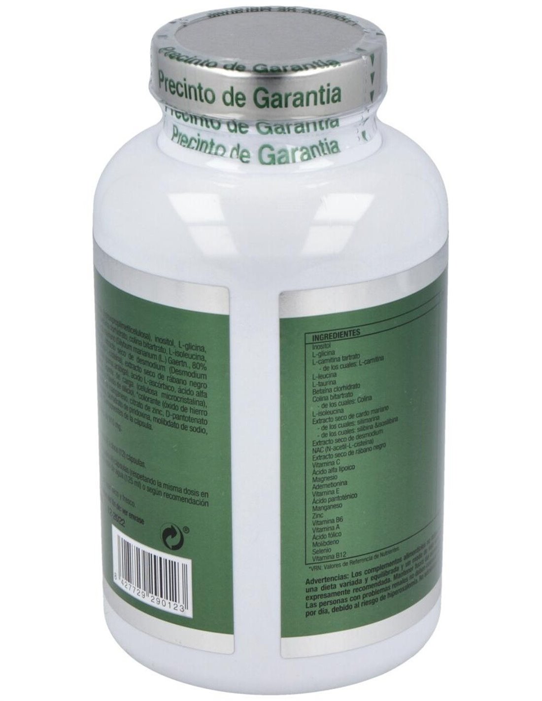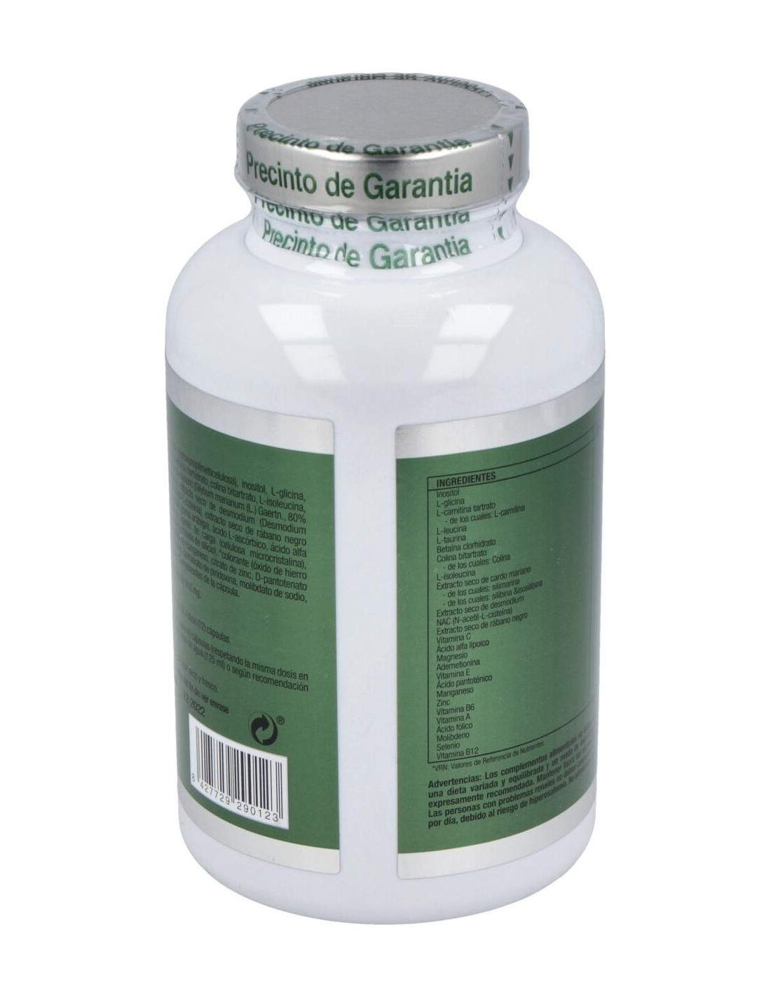 Hidroxipropilmetilcelulosa*, Inositol, L-Glicina, L-Carnitina Tartrato, L-Leucina, L-Taurina, Betaina, Colina, L-Isoleucina, Magnesio Citrato, Extracto Seco De Cardo Mariano, Extracto Seco De Desmodio, N-Acetil L-Cisteina, Extracto Seco De Rábano Negro, Goma Arábiga, Ácido L-Ascórbico, Ácido Alfa Lipoico, Same (S-Adenosyl-L-Metionina Disulfato P-Toluensulfonato), Estearato De Magnesio, Dióxido De Sílice, D-Alfa Tocoferol Acetato, Sulfato De Manganeso, Carbonato De Zinc, Pantotenato Cálcico, Retinol Acetato, Piridoxina, Ácido Fólico, Selenito Sódico, Amonio Molibdato, Cianocobalamina.