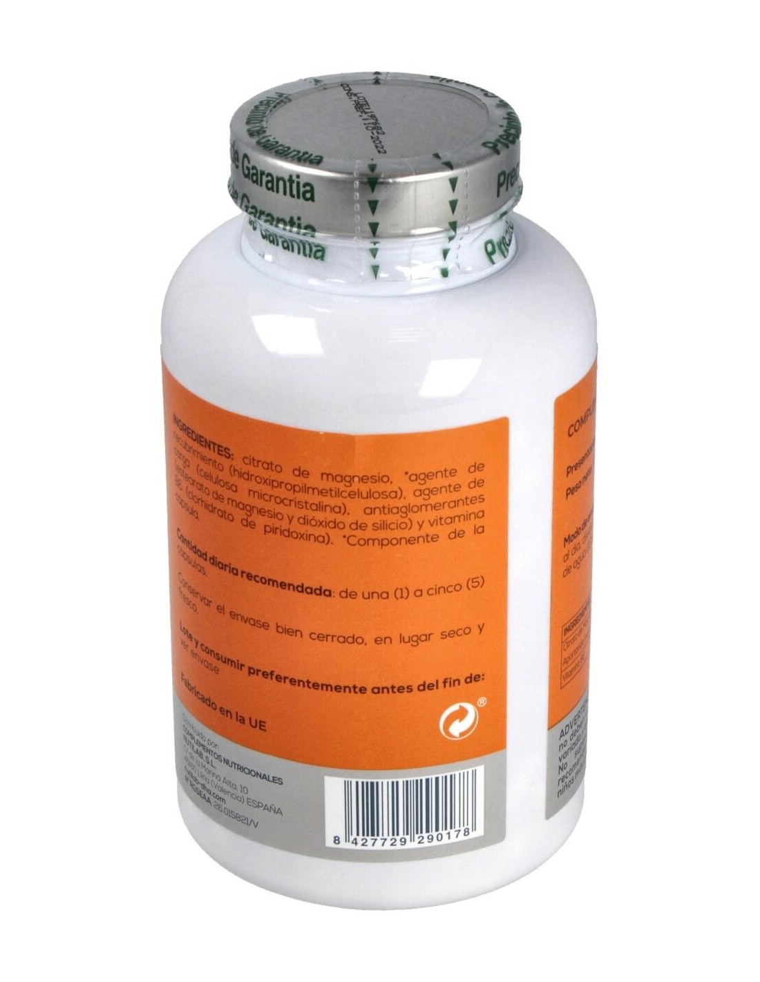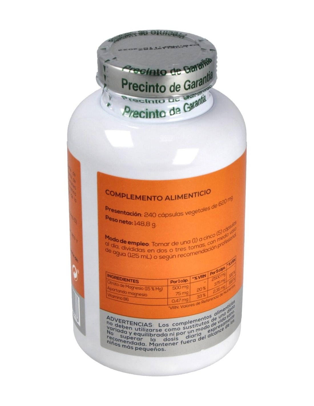 Suplemento a base de citrato de magnesio y vitamina B6. Las cápsulas de citrato de magnesio, contienen un 15% de magnesio elemental, es decir, 500 mg de citrato de magnesio contienen 75 mg de magnesio elemental. El citrato de magnesio presenta una muy buena biodisponibilidad y puede ser absorbido de forma óptima por el cuerpo.