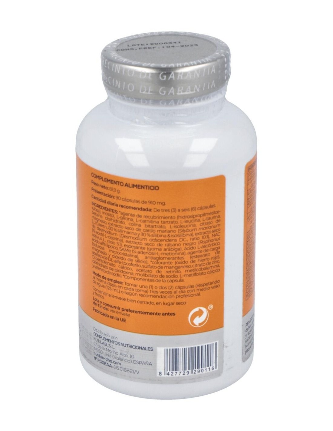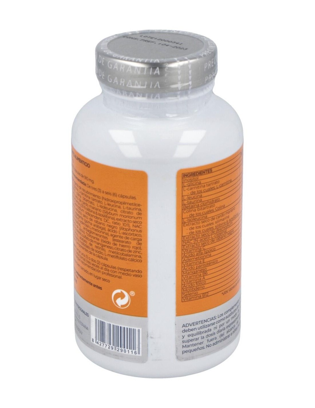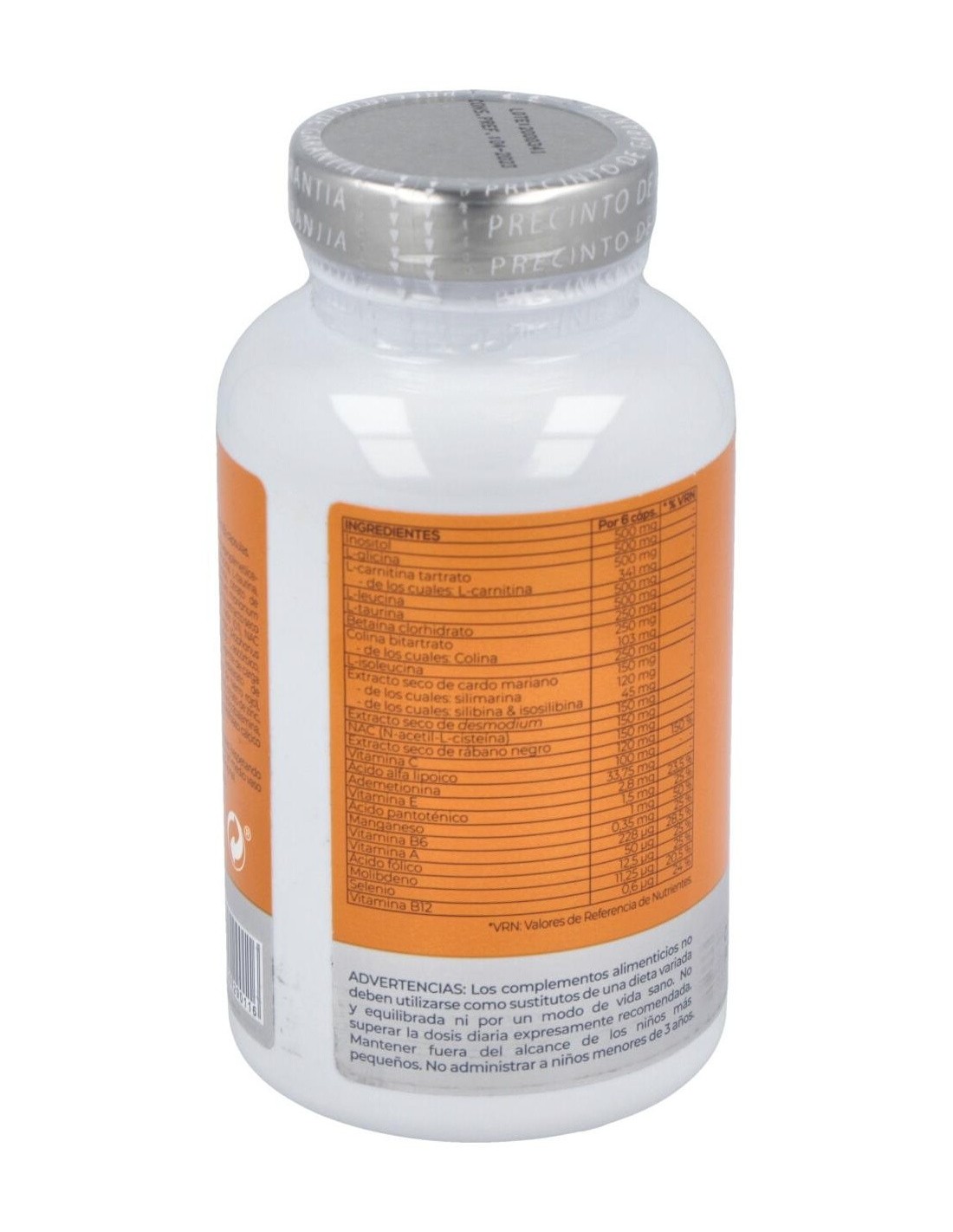 Hidroxipropilmetilcelulosa, inositol, L-glicina, L-carnitina tartrato, L-leucina, L taurina, betaina, colina, L-isoleucina, magnesio citrato, extracto seco de cardo mariano, extracto seco de desmodio, N-acetil L-cisteina, extracto seco de rábano negro, goma arábiga, ácido L-ascórbico, ácido alfa lipoico, SAME (S-adenosyl-L metionina disulfato p-toluensulfonato), estearato de magnesio, dióxido de sílice, D alfa tocoferol acetato, sulfato de manganeso, carbonato de zinc, pantotenato cálcico, retinol acetato, piridoxina, ácido fólico, selenito sódico, amonio molibdato, cianocobalamina.