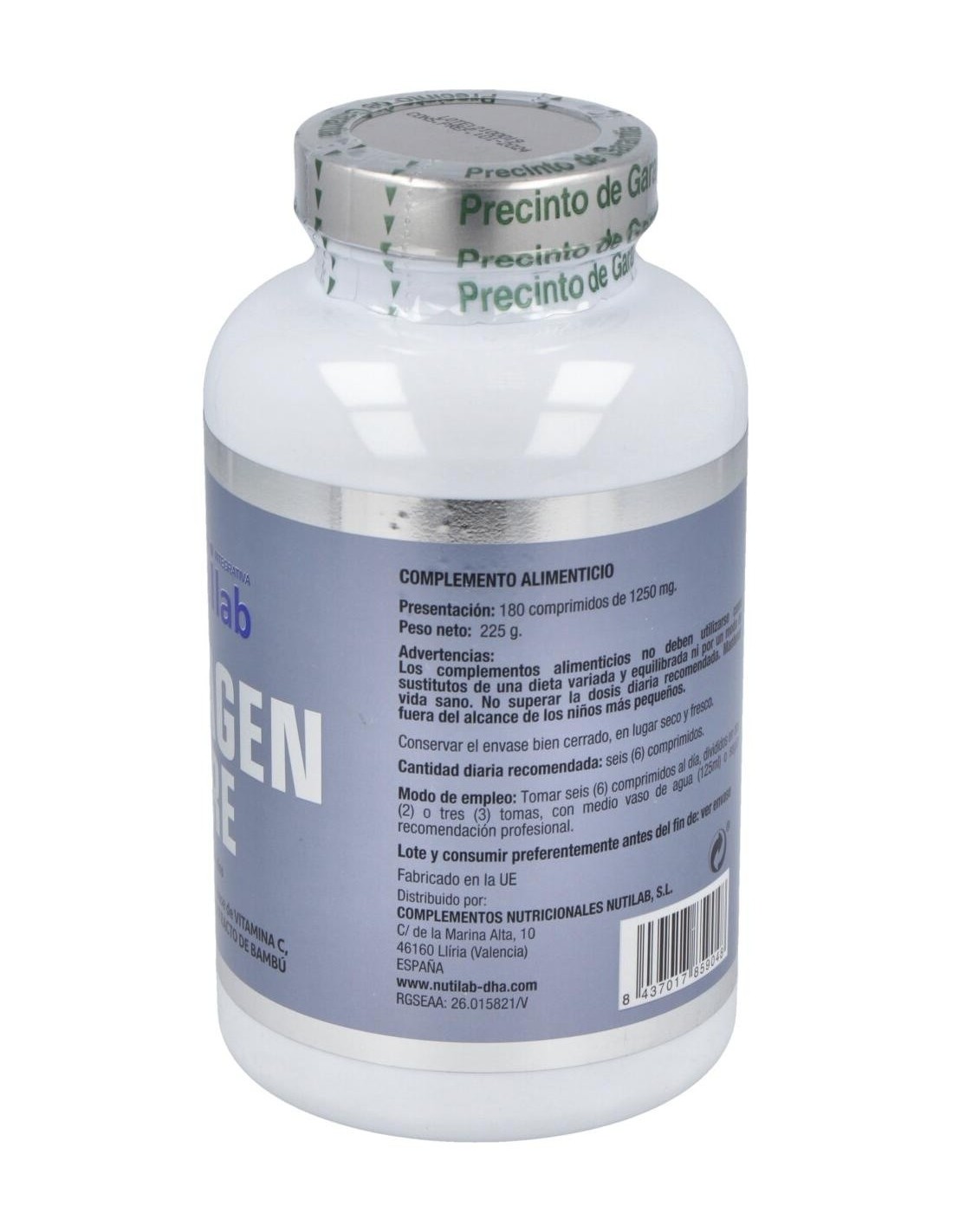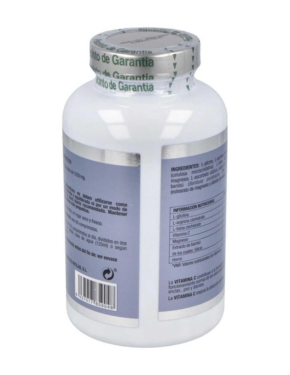 L-glicina, agente de carga (celulosa microcristalina), L-arginina clorhidrato, L-lisina clorhidrato, bisglicinato de magnesio, L-ascorbato cálcico, antiaglomerante (dióxido de silicio), óxido de magnesio, extracto seco de bambú (Bambusa arundinacea, 70% silicio), antiaglomerante (estearato de magnesio) y pirofosfato férrico.