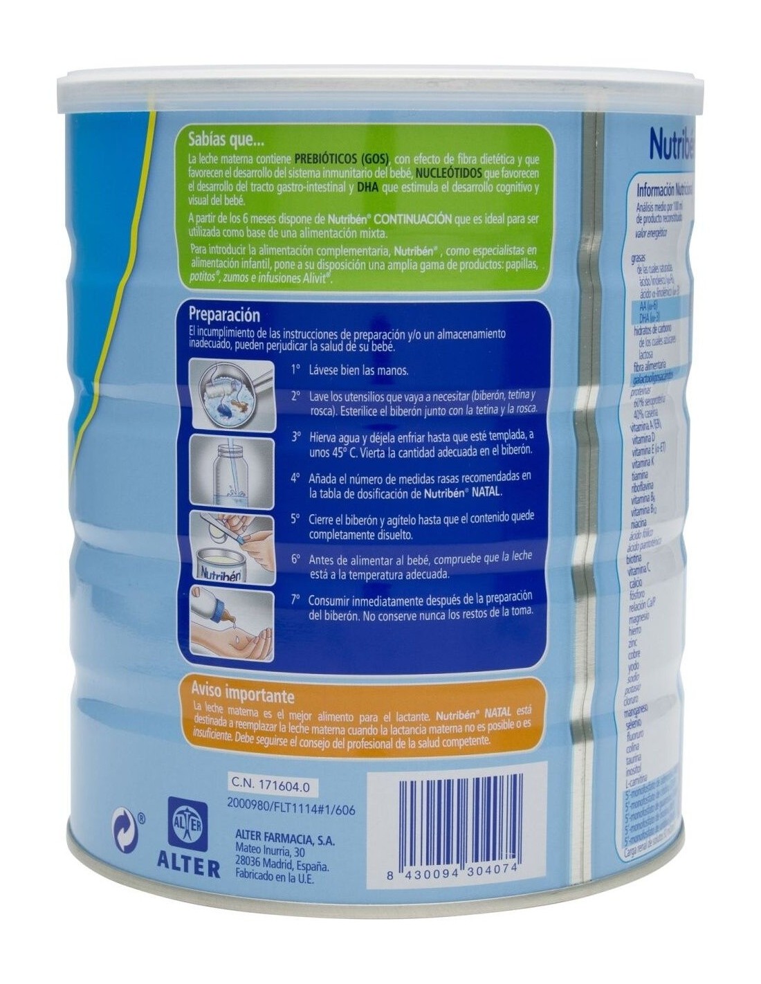 Nutriben Natal 1 Pro Alpha 800Gr. de Nutriben
