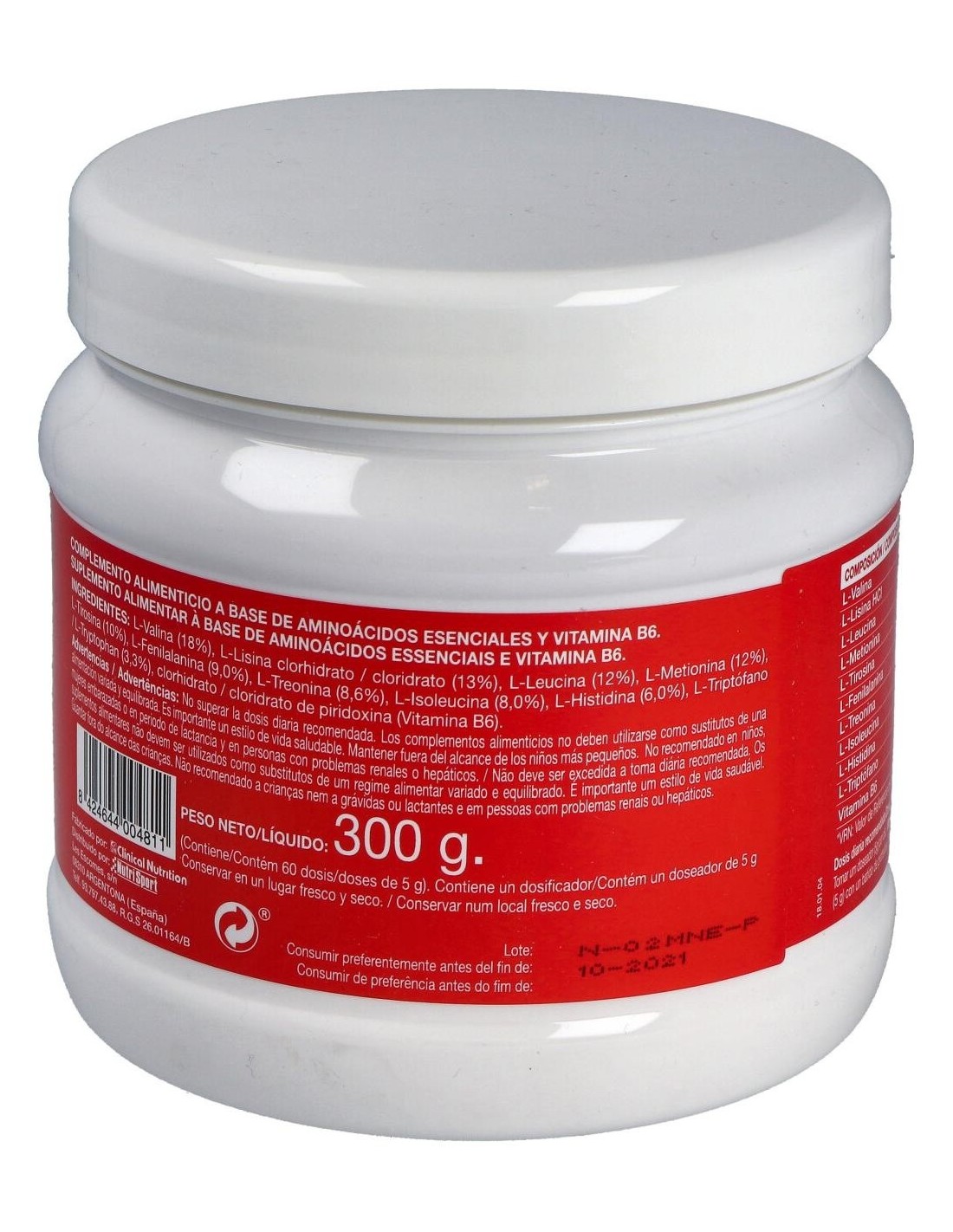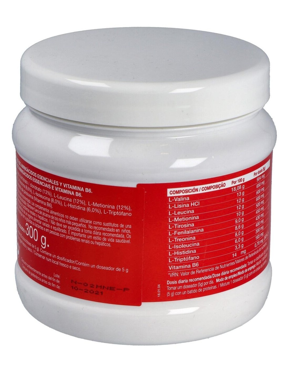 Complemento alimenticio que proporciona aminoácidos esenciales, adecuado para incluir junto con una alimentación variada y equilibrada y un estilo de vida saludable. La presencia de proteínas en la dieta forma parte de una alimentación variada y equilibrada para poder realizar las actividades diarias con total normalidad. Además, las proteínas contribuyen a un aumento y conservación de la masa muscular. Las proteínas están formadas por cadenas de aminoácidos. Los aminoácidos esenciales son aquellos que debemos ingerir mediante la dieta ya que nuestro organismo es incapaz de sintetizarlos. Existen 8 aminoácidos esenciales:L-Leucina, L-Isoleucina, L-Fenilalanina, L-Metionina, L-Lisina, L-Treonina, L-Triptófano y L-Valina.
