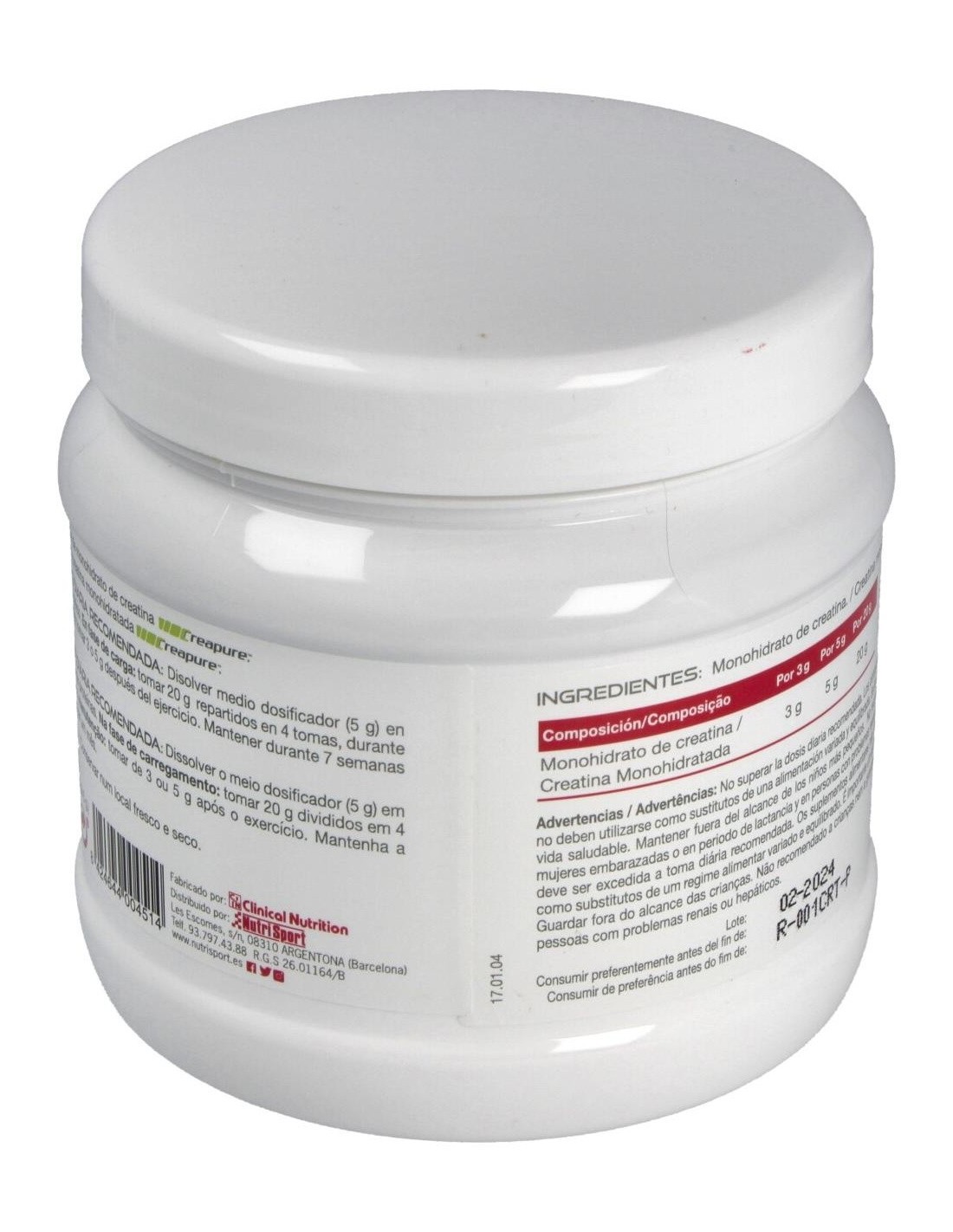 Creatina monohidrato + Nutrisport + Creatina Polvo 400 gr. es un complemento alimenticio a base de Creatina Monohidrato CN Creapure TM. La creatina interviene en procesos metabólicos a nivel muscular, este producto ayuda a ganar masa muscular. Consultar con un especialista. Formato en polvo.
