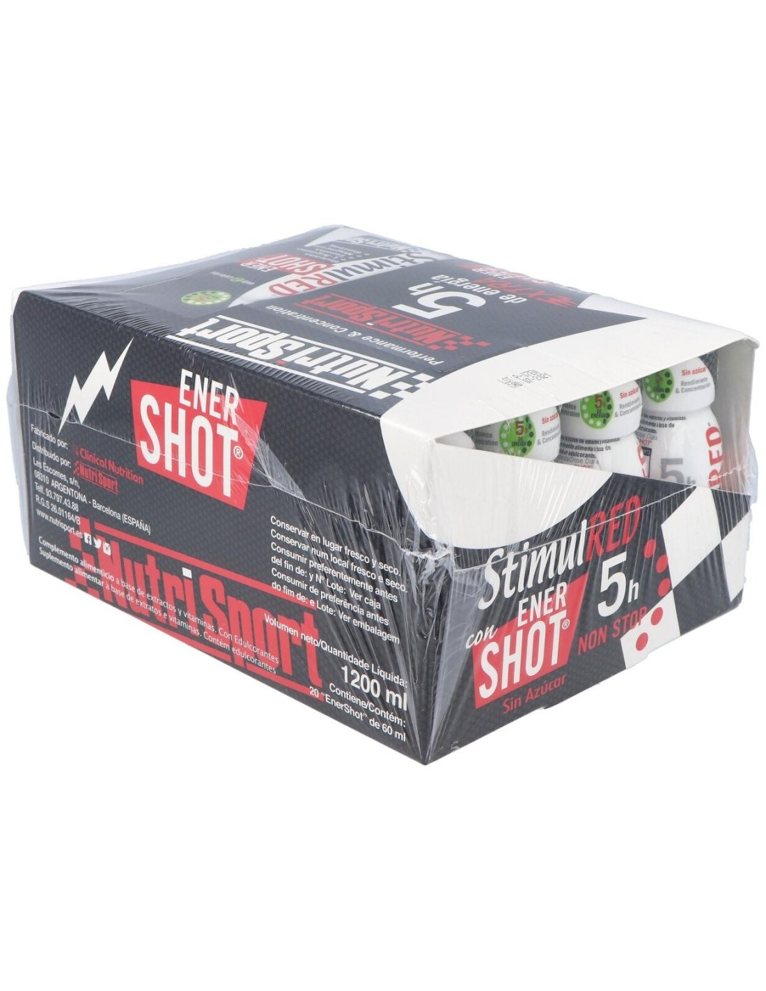 StimulRed Enershot Nutrisport Exp. + 20 Und. concentrado dietético que aporta cantidad adecuada de hidratos de carbono de cadena corta y de cadena. Contiene L-Arginina, taurina, guaraná, ginseng, cafeína y vitamina C. Indicado para deportistas, consultar con un especialista.
