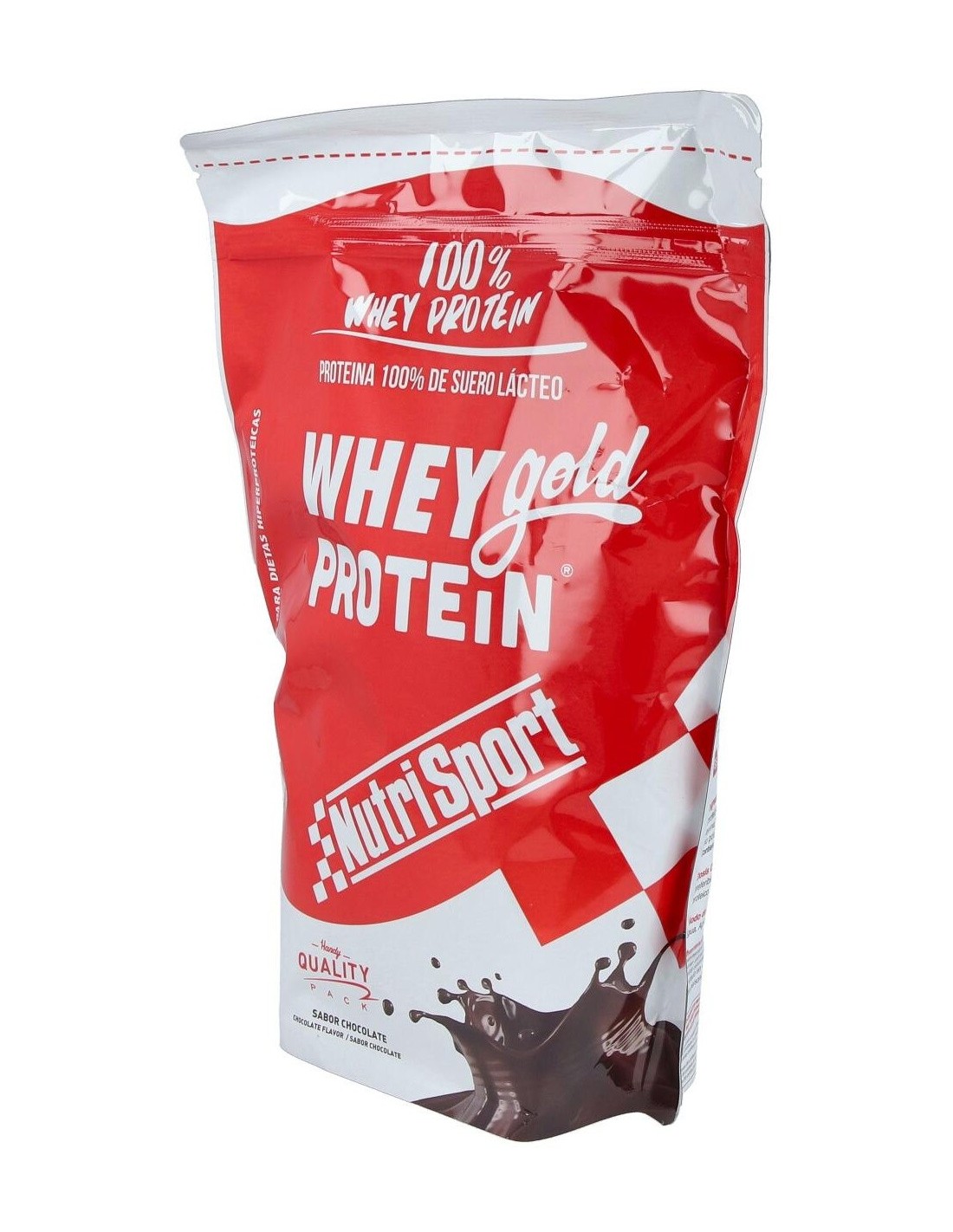 Nutrisport Whey Gold Protein Chocolate 500g es un suplemento nutricional para la vida del deportista a base de proteína de suero de leche, ayuda a aumentar la masa muscular. Recomendado para tomar después del entrenamiento. Aporta vitamina B6 y aminoácidos (BCAAs). Polvo sabor chocolate.