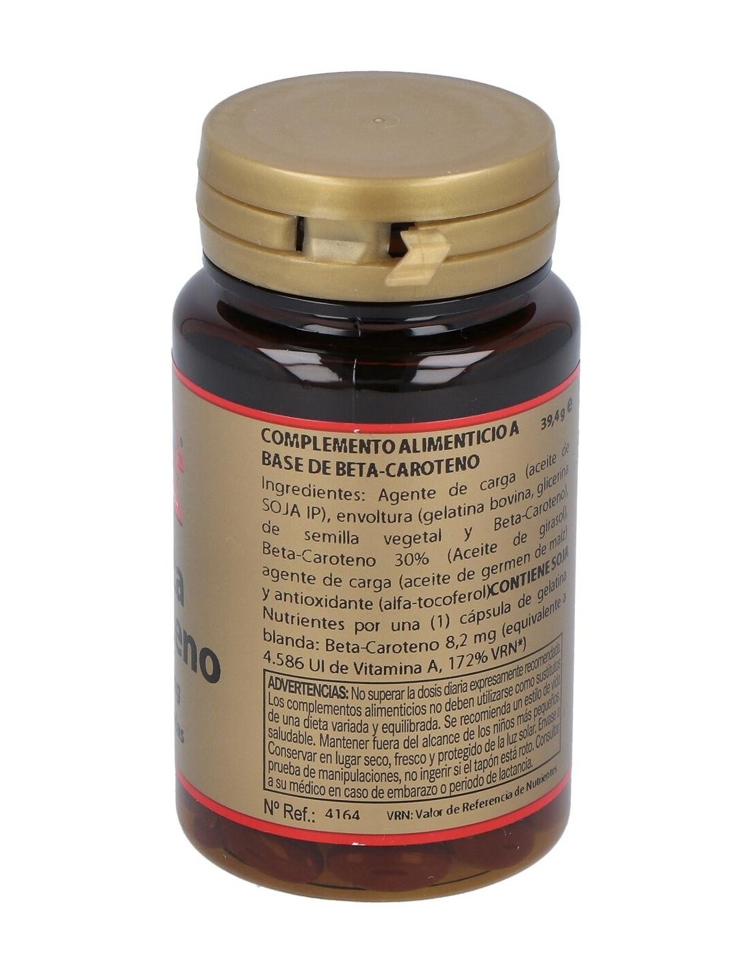 Complemento alimenticio formulado a base de betacaroteno, nutriente rico en vitamina A, C y E. Contribuye al mantenimiento normal de la piel y de la función ocular. El betacaroteno ejerce una acción beneficiosa sobre el proceso de bronceado y la capacidad cognitiva. Indicado para adultos. No apto en caso de embarazo o lactancia.