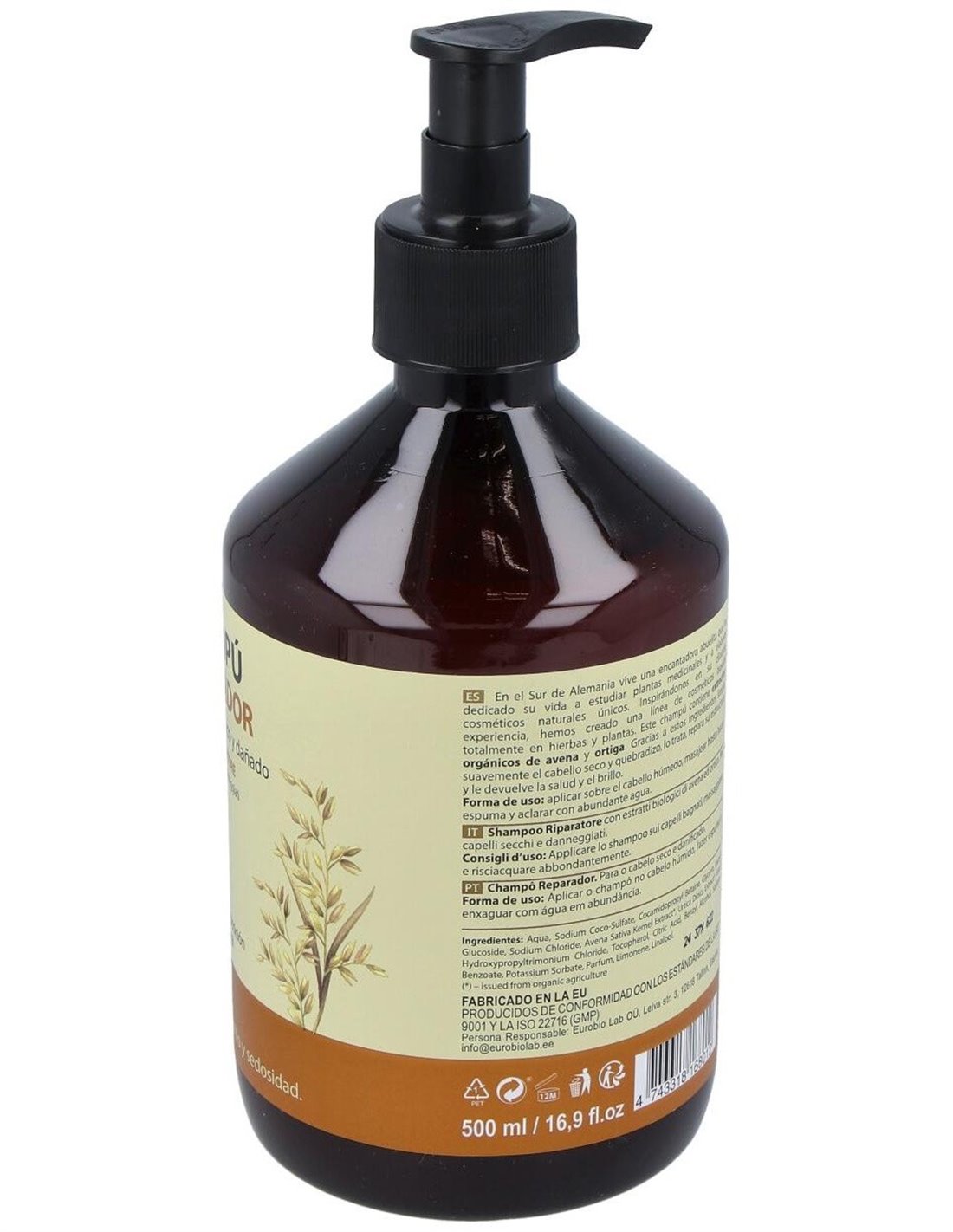 Para cabellos secos y dañados. La Avena y la Ortiga son extremadamente buenas para reforzar el cabello e incrementar su crecimiento. Después de su uso el cabello tiene una apariencia más saludable, brillante y sedosa. Limpia delicadamente el cabello seco y dañado, cuidando y reparando su estructura mientras le aporta salud y un brillo natural. Certificado COSMOS NATURAL.