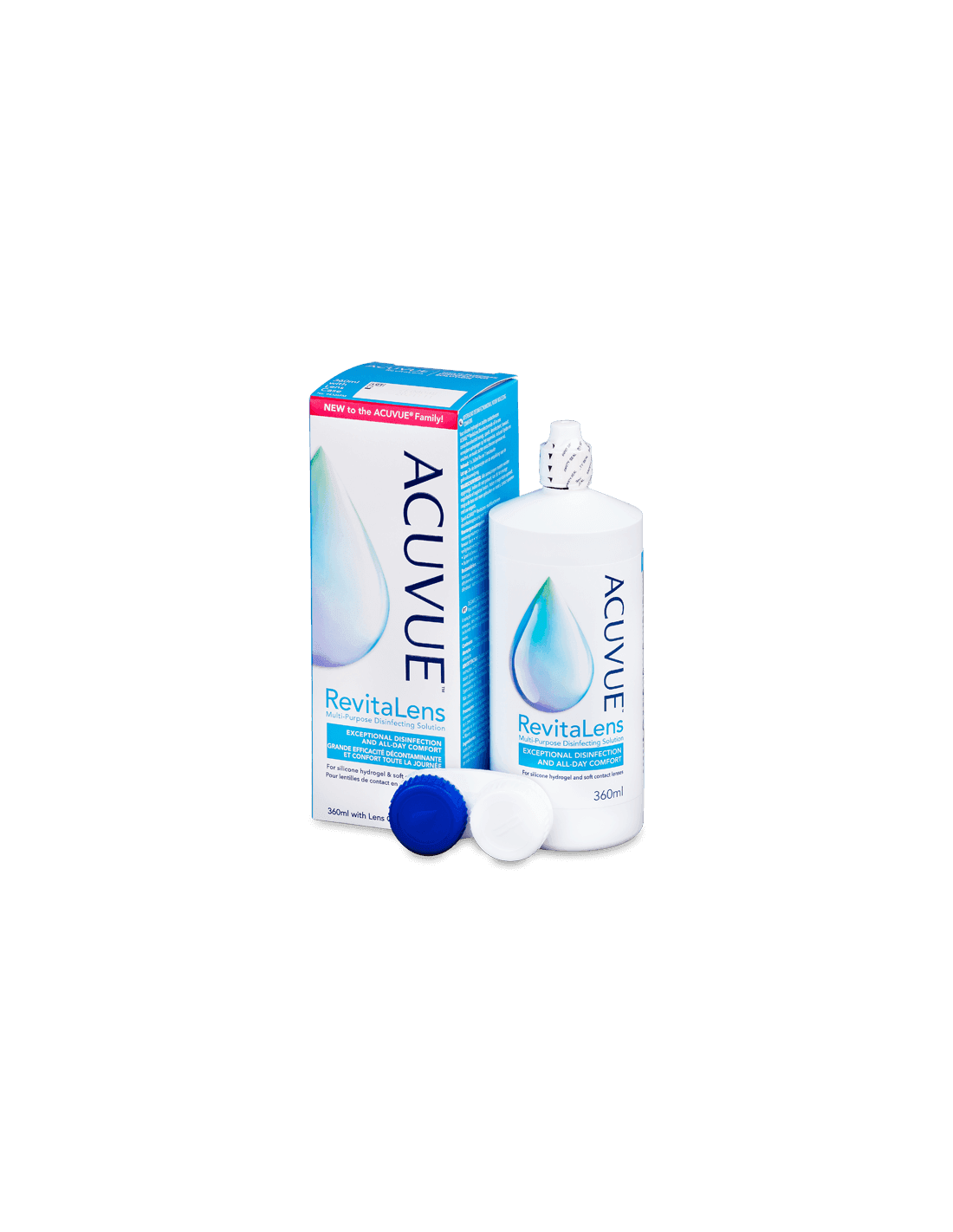 Abbott Complete RevitaLens es una solución única desinfectante que limpia, acalara, desinfecta, conserva y elimina depósitos superficiales, incluso lípidos y proteínas. Esta solución rehidrata las lentes de contacto blandas y de hidrogel de silicona.