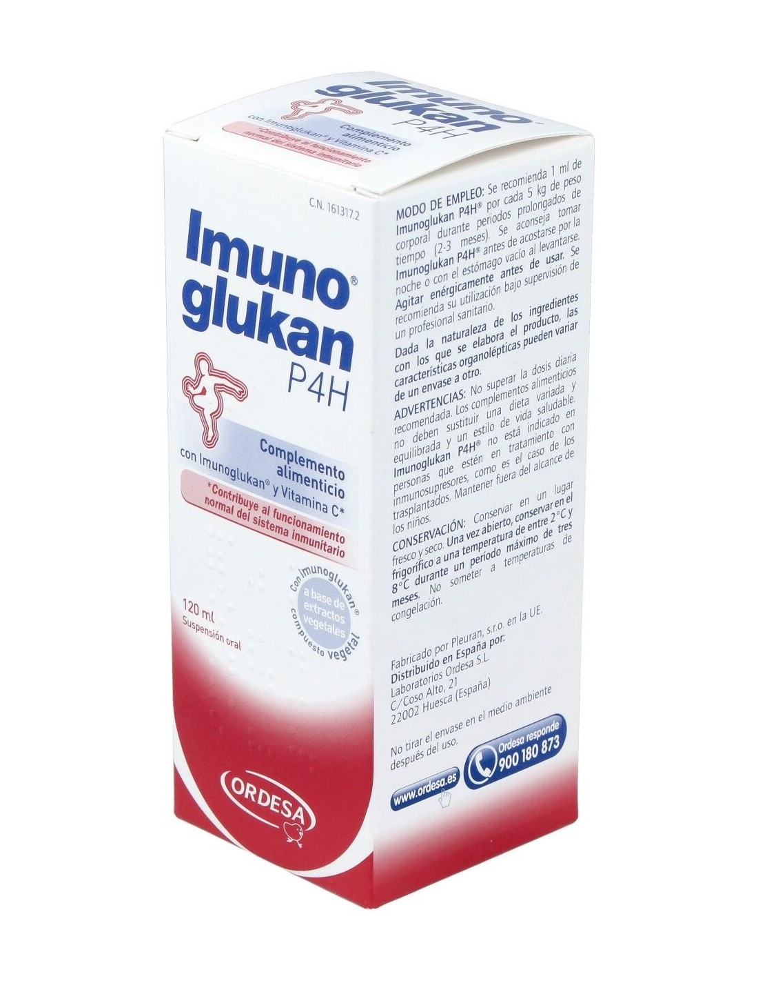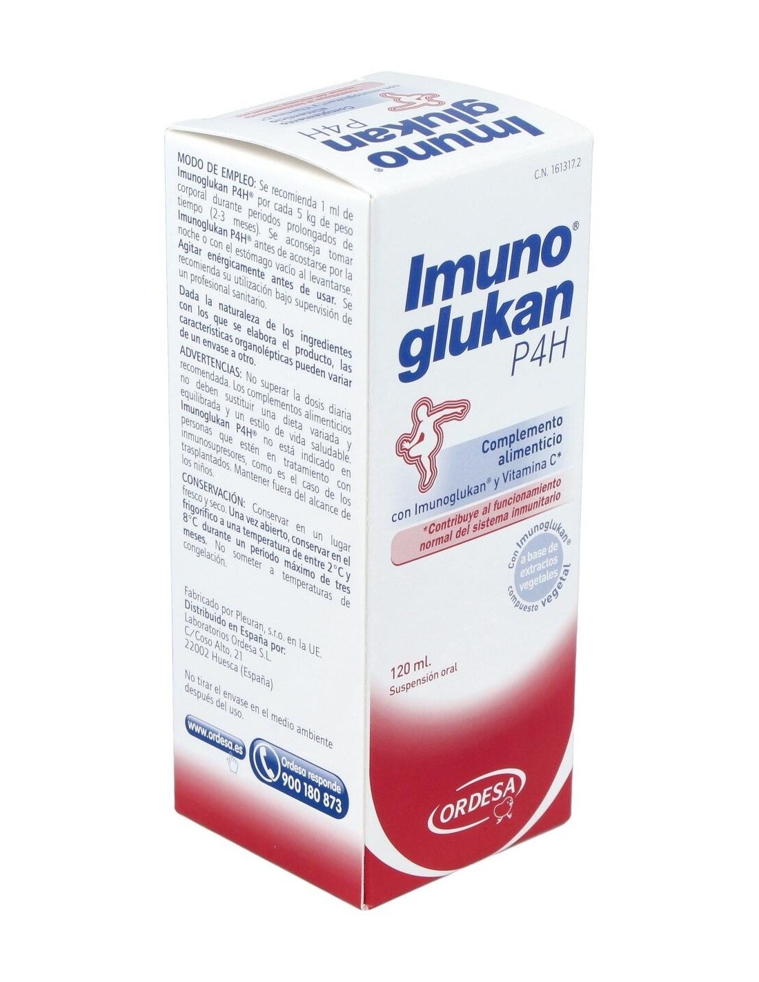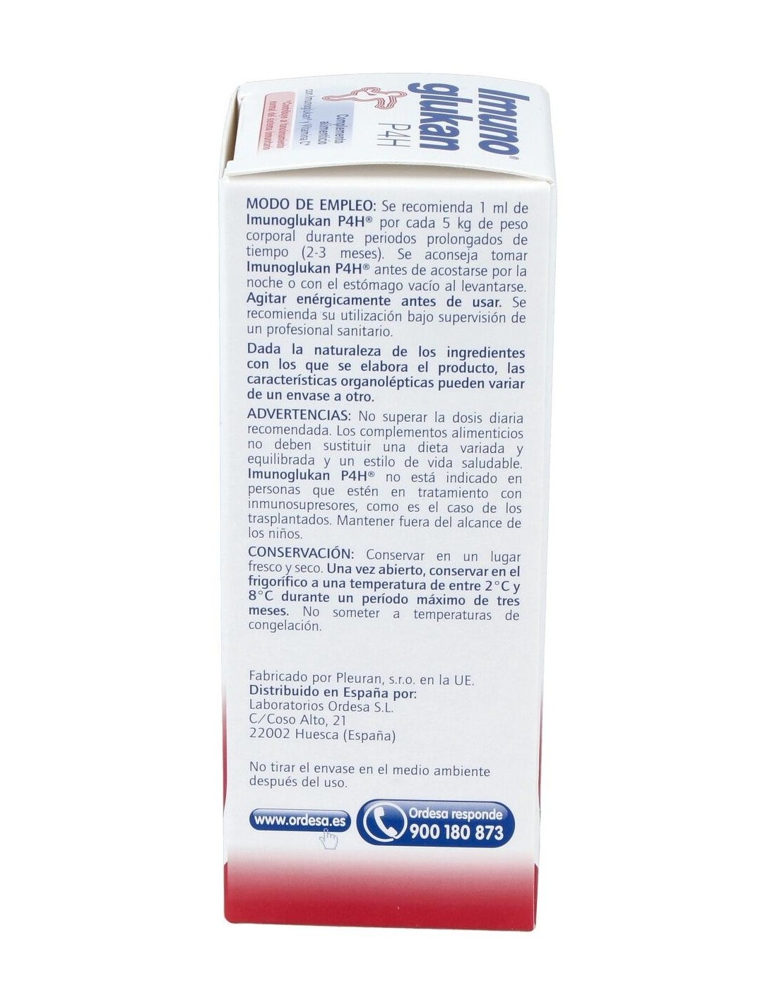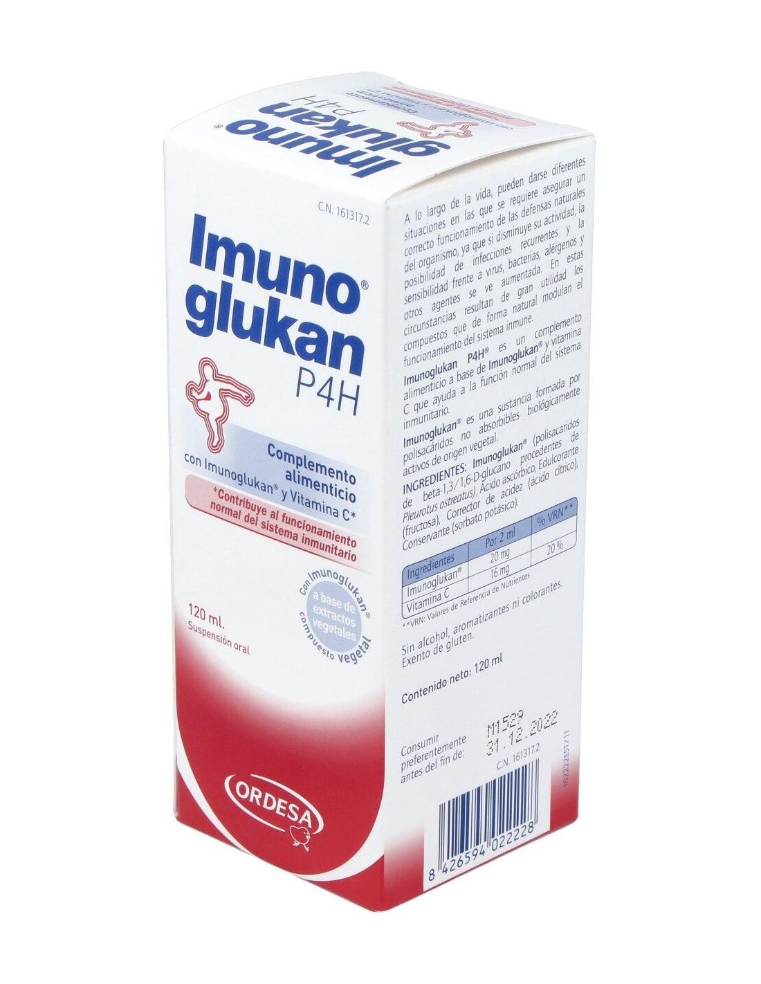 Imunoglukan® (polisacaridos de beta-1,3/1,6-D-glucano procedentes de Pleurotus ostreatus), Ácido ascórbico, Fructosa (edulcorante), Ácido cítrico (corrector de acidez), Sorbato potásico (conservante).