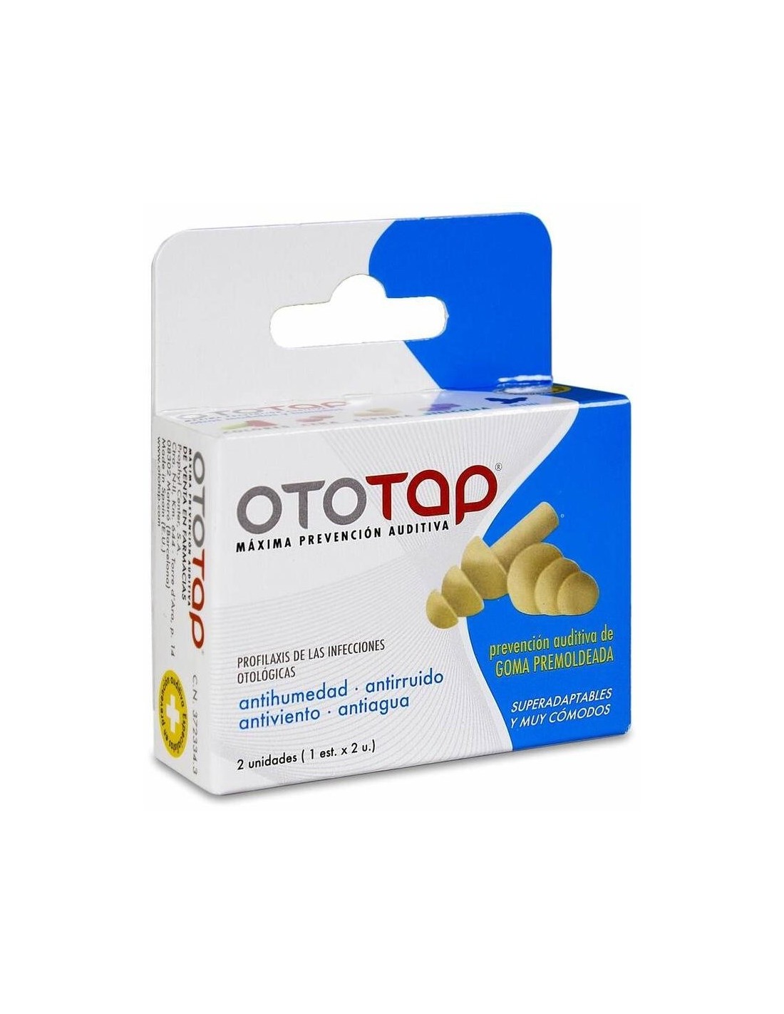 OTOTAPOtotap Goma premoldeada, está especialmente indicado para reducir el riesgo de penetración de agua en el oído durante el baño, ducha y deportes acuáticos (excepto submarinismo), así como para preservar del ruido, polvo, arena, etc. Además el Ototap favorece la relajación y previene de la dificultad para conciliar el sueño. Incorpora envase de plástico reciclado para su mejor conservación higiene, y transporte. Producto 100% reciclable.