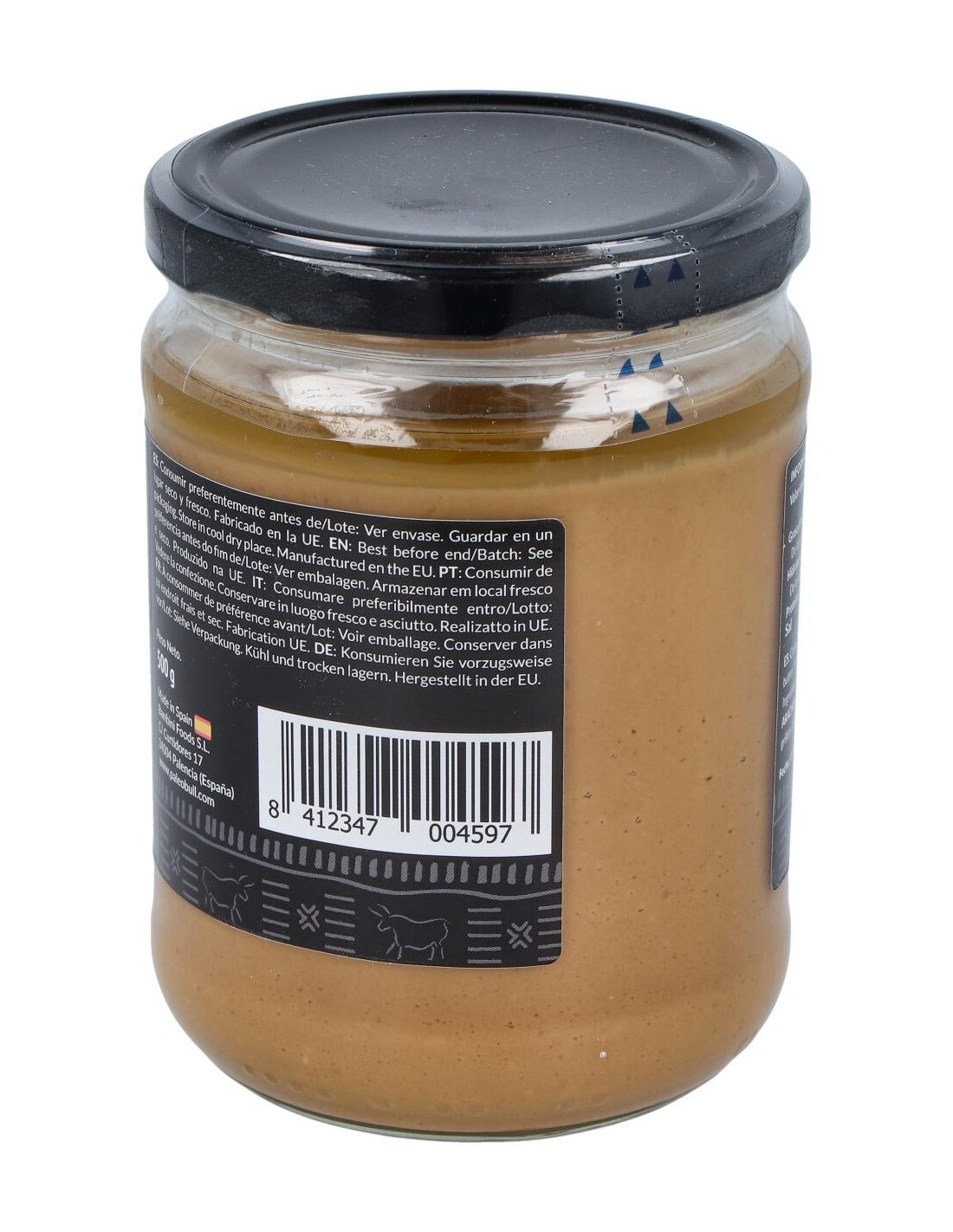 Resultado de tostar y triturar 457 cacahuetes en cada tarro. Sin aditivos artificiales, sin aceite de palma, sin azúcar y sin sal. Apta para la dieta vegana.