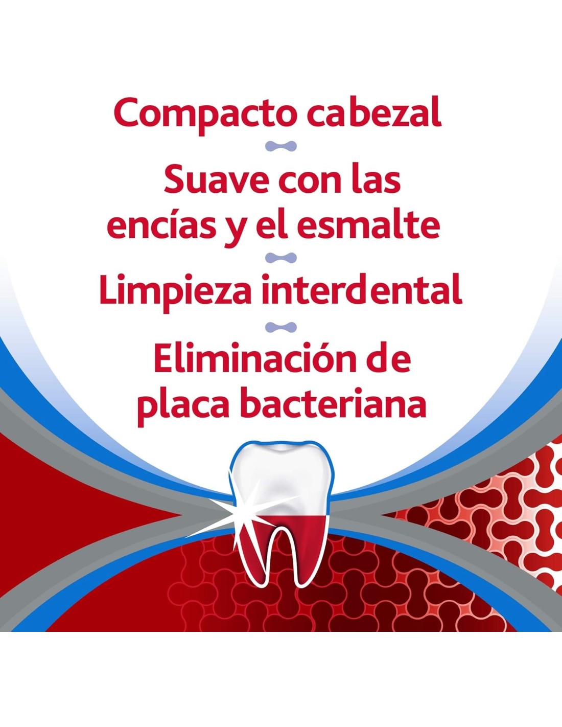 Cepillo de dientes especial para encías inflamadas o sangrantes. Sus filamentos son suaves y limpian de forma eficaz la placa bacteriana, para evitar la acumulación y favorecer el cuidado y protección de la boca.