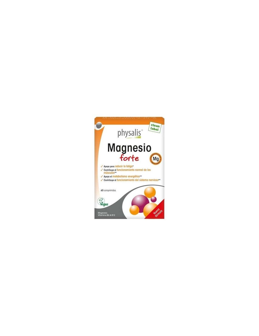 PHYSALISEl magnesio ayuda a disminuir el cansancioy la fatiga y contribuye al funcionamiento normal del sistema nervioso.También contribuye al funcionamiento normal de los músculos. Physalis Magnesio forte contiene una sinergia de tres formas de magnesio de fácil asimilación: el bisglicinato y el glicerofosfato de magnesio, así como magnesio marino extraído de agua de mar rica en minerales (Aquamin® Mg). Producto vegano.