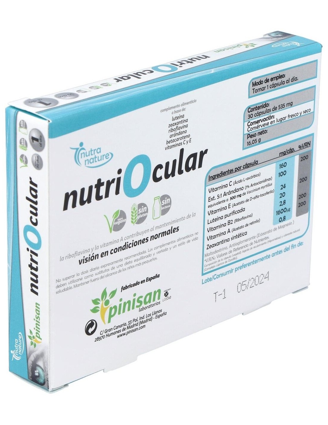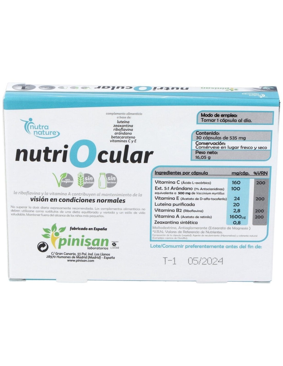 Pinisan Nutriocular es un suplemento nutricional, formulado a base de luteina y zeaxantina, para garantizar una correcta funcionalidad en el sistema ocular. Gracias al aporte de vitaminas A y E, betacaroteno y rivoflavina consigue reparar y proteger tu visión de manera totalmente efectiva e inmediata.