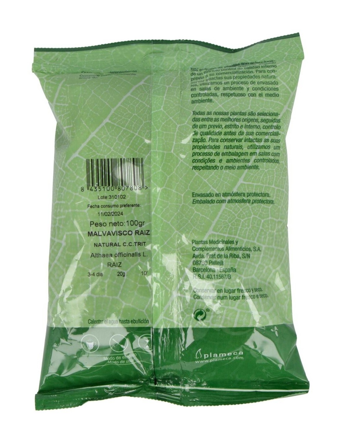 Malvavisco Raiz Natural C.C Trit. Bolsa 100Gr. de Plameca